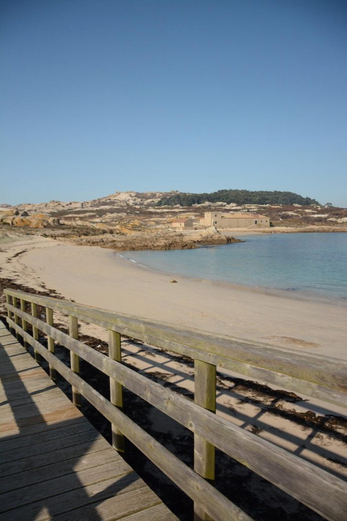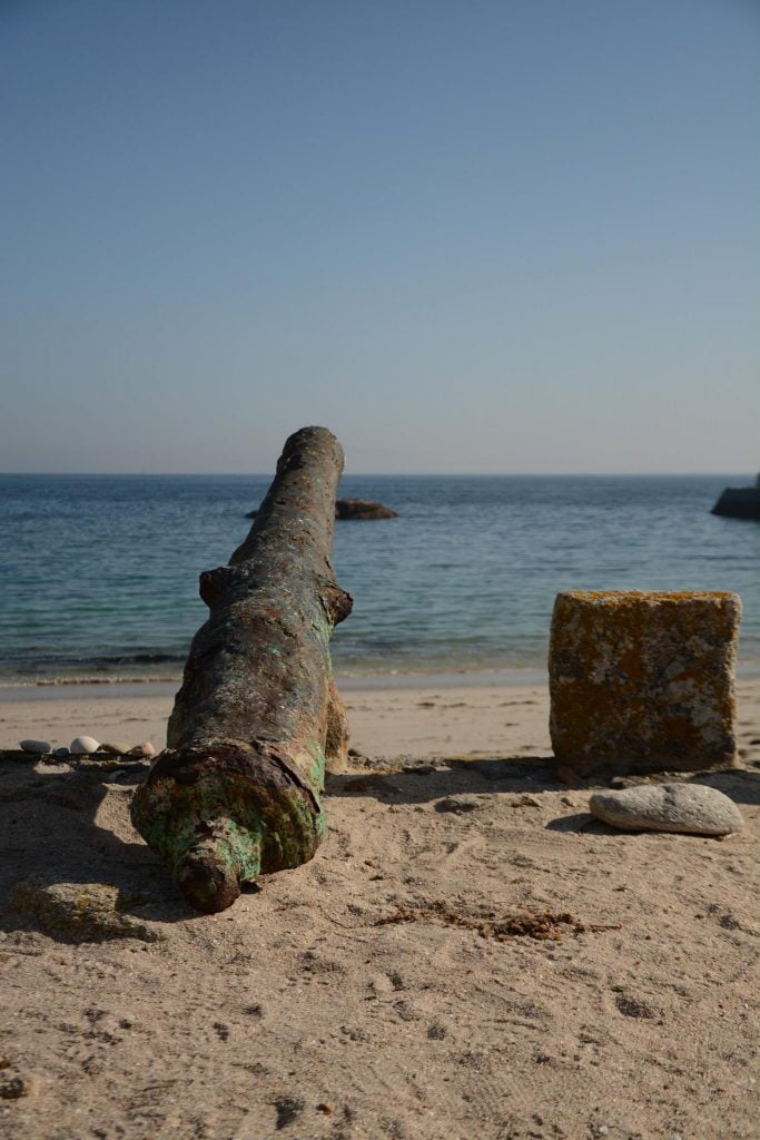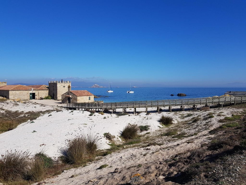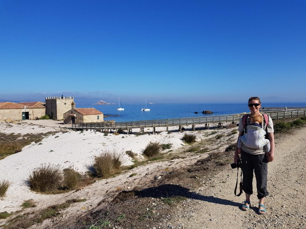 Just one night at this beautiful place. Anchored easily, the only boat in the harbour, giving the pier and the nearby rock a wide berth but staying close to the beach. While in Ria Arousa the sea-water cooling our port engine stopped pumping, meaning we couldn’t use the engine (except in an emergency). Charlotte and I had checked it out and deduced that it was the sea-water inlet, which on that engine comes from the saildrive leg, that was causing the problem, and we couldn’t fix it from in the boat. So, when we got settled in a quiet anchorage I took a quick dip to clean it out. Fixed the engine and gave the kids an example of the early symptoms of hypothermia in one go – we really need wetsuits for the adults on board, as well as the kids.