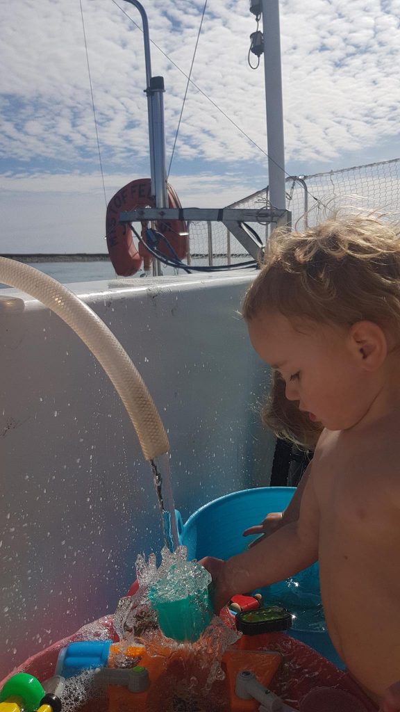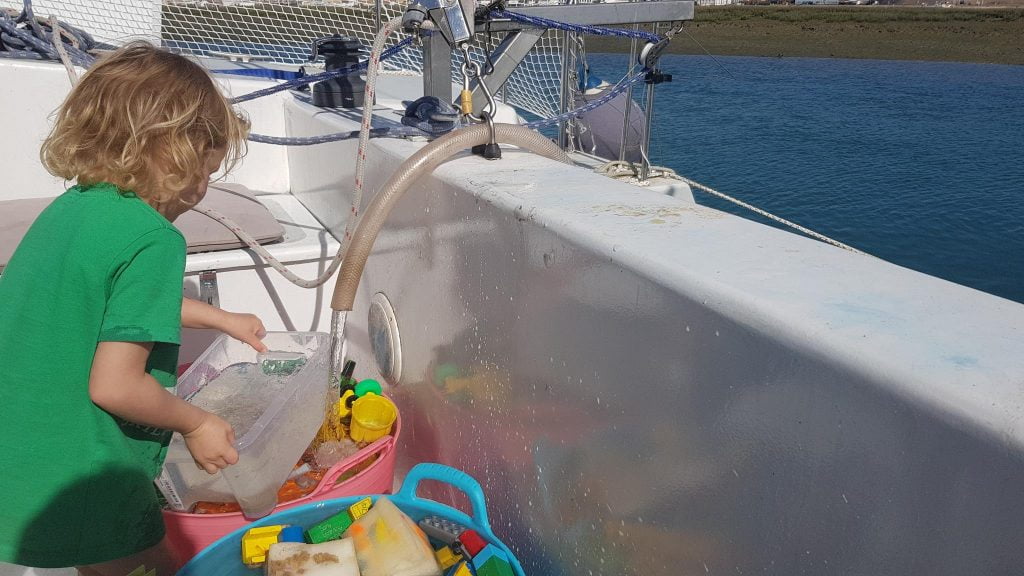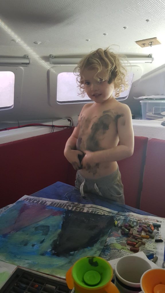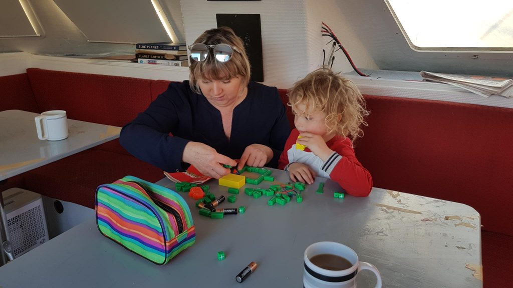 Passage was boring – motor sailing with the majority of the propulsion coming from the motors, which I don’t think any sailor is a fan of. We wouldn’t have chosen that day for the passage, but we needed to get there in time to meet Nana G who stayed with us for a few days, and at least it was flat enough for the kids to hurtle around deck while we were moving which they always enjoy. And, on the bright side, Charlotte felt OK the whole way – probably at least partly thanks to (reluctantly) taking one of the seasickness pills purchased for Dave in Lisbon.