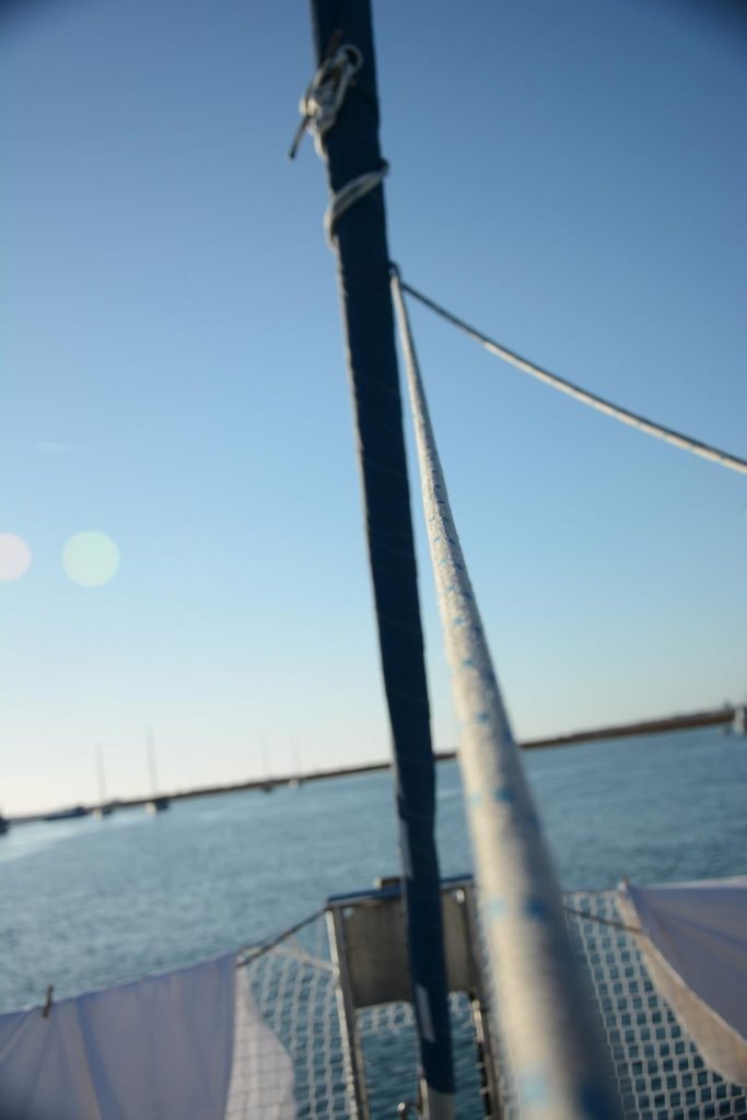 With our new solar panels mounted on the guard rails, as well as the flexible panels on the boom, we have not needed to run the engine for power generation at all since leaving Lisbon. The motor running on the way to Faro, combined with a very sunny day the next day, has both banks near-capacity – with enough spare power to turn the inverter on and charge laptops/hoover etc., and run the watermaker for a while. Hopefully that’ll continue.