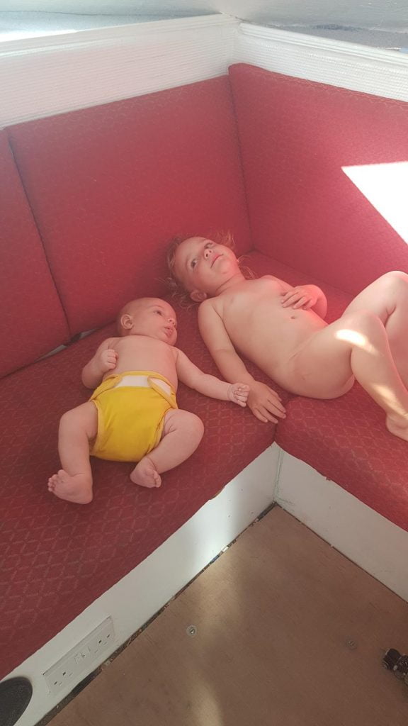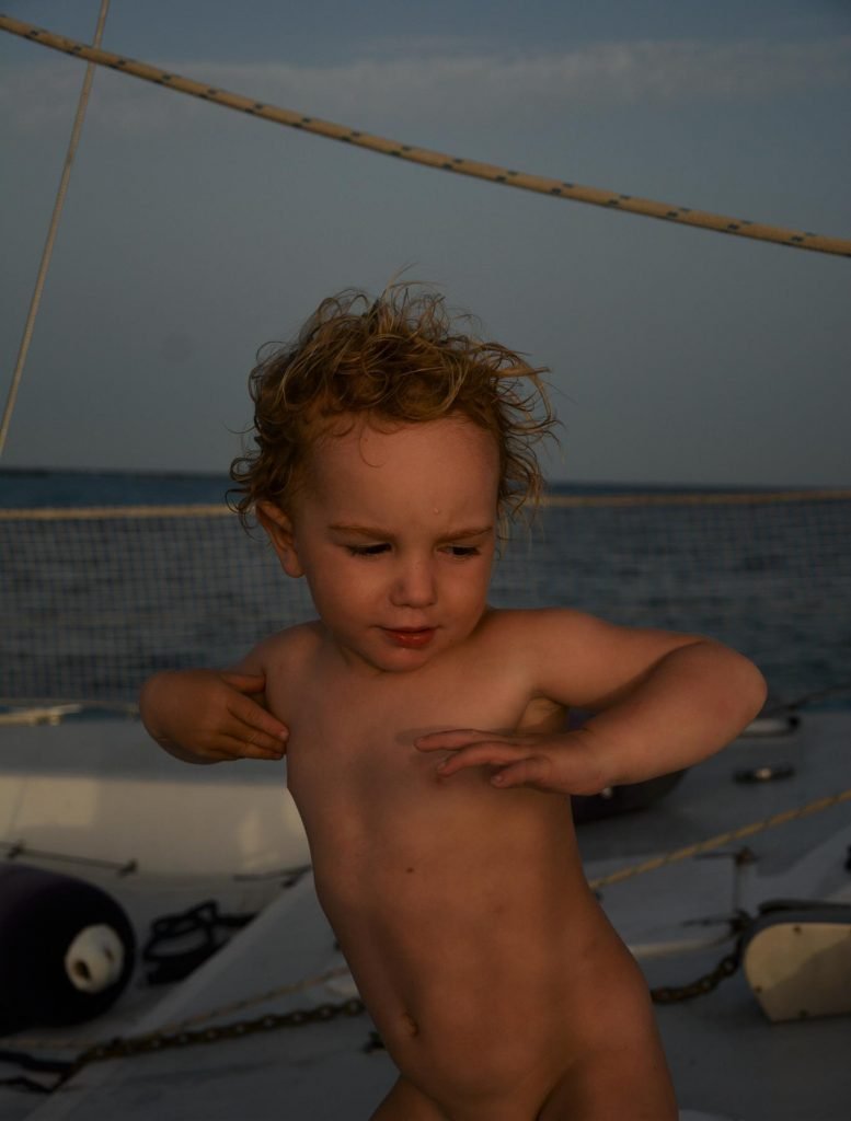 On our last day we decided against going out in the dinghy – it’s challenging managing two kids and a baby getting into the dinghy in any case, but half-meter swells from both directions made it a little too dangerous for our tastes. We’re trying to work out an easier way to board the dinghy than using the stern ladders (as the stern bounces in any kind of swell, and it is hard to secure the dinghy within short-step distance) – ideas welcome.