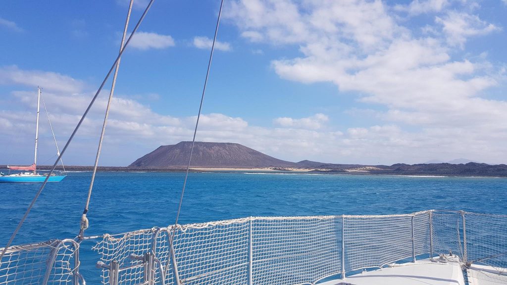 Anchored just outside the mooring buoys in about 8m depth, excellent holding in sand. Sheltered from the worst of the wind-driven waves by the island; but the swell swings at times around both sides of the island (probably due to the acceleration zones) so even with a consistent NE forecast and maximum 1.5m swell it wasn’t the most comfortable place we have ever sat. Despite this, the bay was packed for the weekend with both charter catamarans and locals who ventured out to swim, sit and enjoy the sunshine. Unlike Graciosa and Papagayo, this was an all-day thing starting around 10am and ending after 8pm some days – this is not the most peaceful anchorage around.