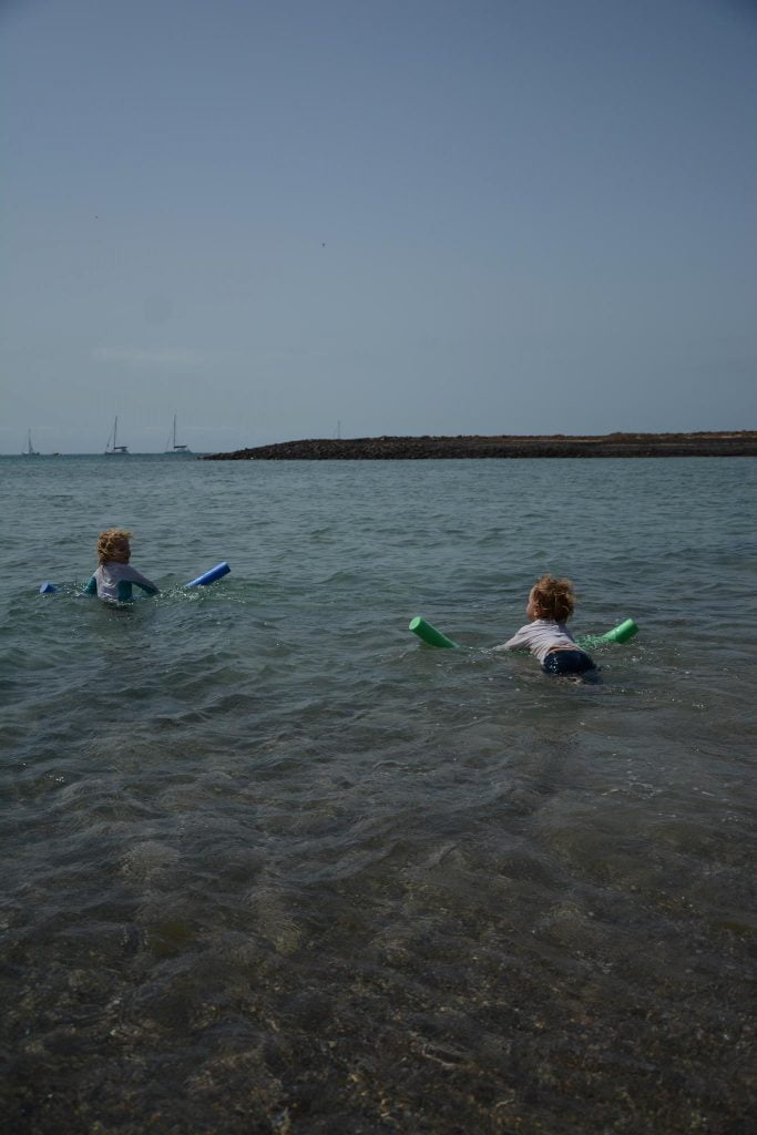 In any case, the kids demanded we stay for a couple of days to enjoy the beach and being at anchor in general. So we did. The lagoon can be accessed by dinghy for around 3-4 hours either side of high tide – its easy to tell when the tide is receding visually as the sides of the dinghy ‘break’ a good while before the rocks in the middle are exposed. It’s a little busy, with the ferries, charter cats and other visitors, but it is a beautiful beach and sheltered swimming area – perfect for kids, and for Charlotte who wanted to practice snorkelling in more sheltered climes! We didn’t explore much beyond the beach, except to follow the kids a few hundred meters into the scrubland behind it, but there were some well-marked walking trails which we would have used if the tide times had allowed a morning visit (or we had felt like leaving the dinghy on the end of the ferry pier).