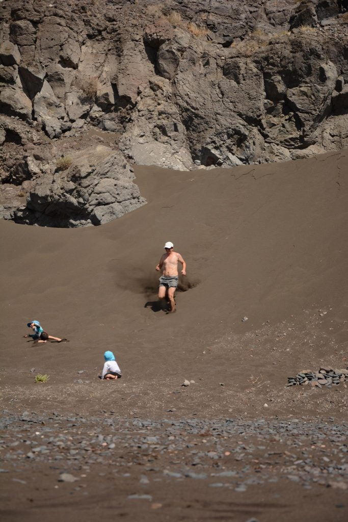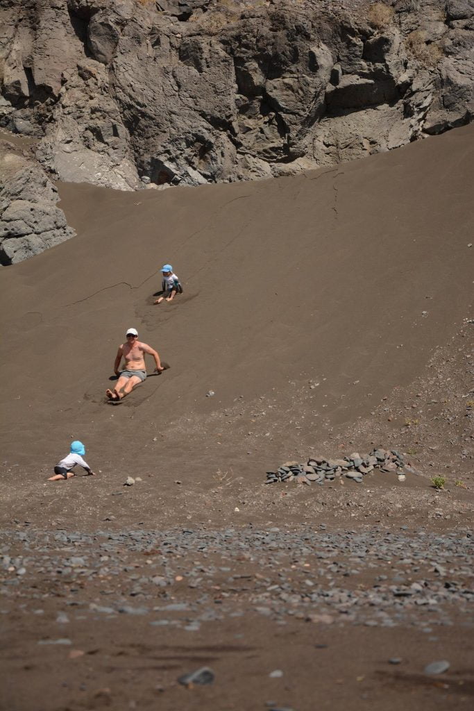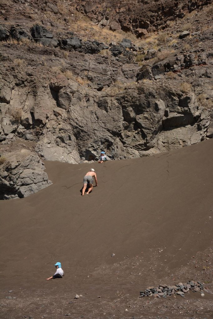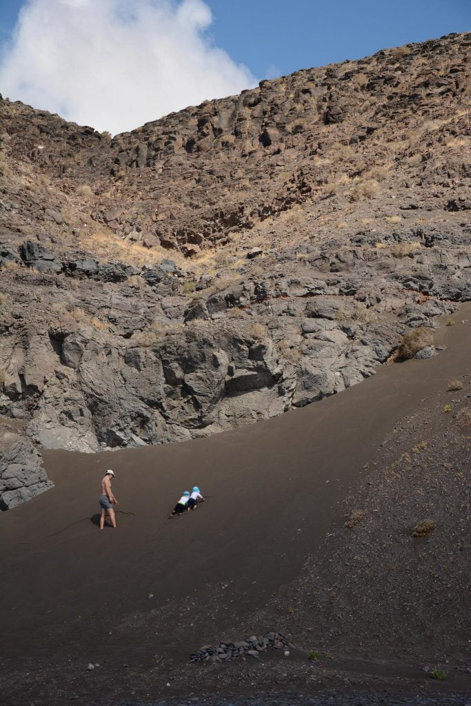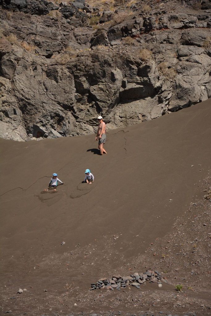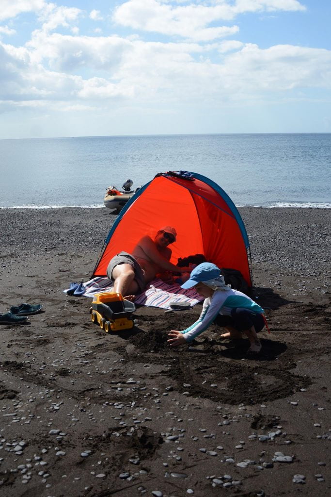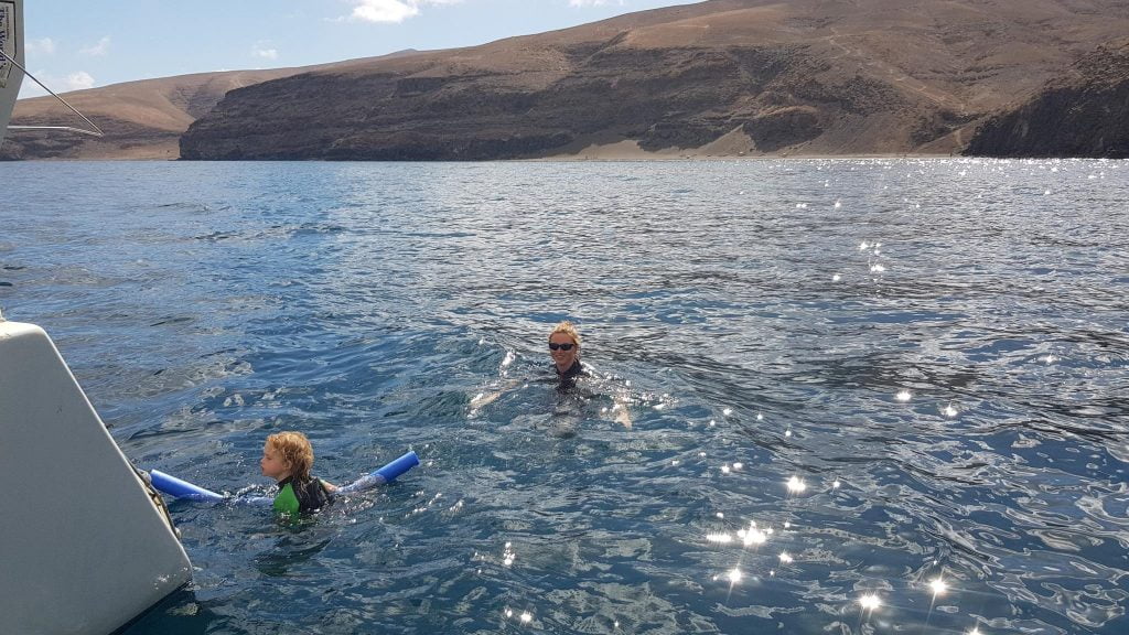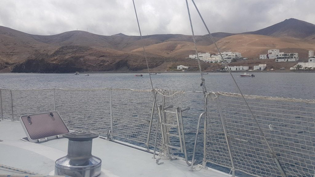 The beach to the West of the village has a nice mix of soft sand and pebbles, ideal for digging I am told. All the reports say that the village is Lanzarote as it used to be before the tourism – and it certainly looked that way. We didn’t visit on our first full day at anchor as the kids were enjoying freedom and the beach. Theo had claimed the beach to the extent that he was growling at passers-by to scare them away – he often seems to think of the quieter beaches as his/our territory.