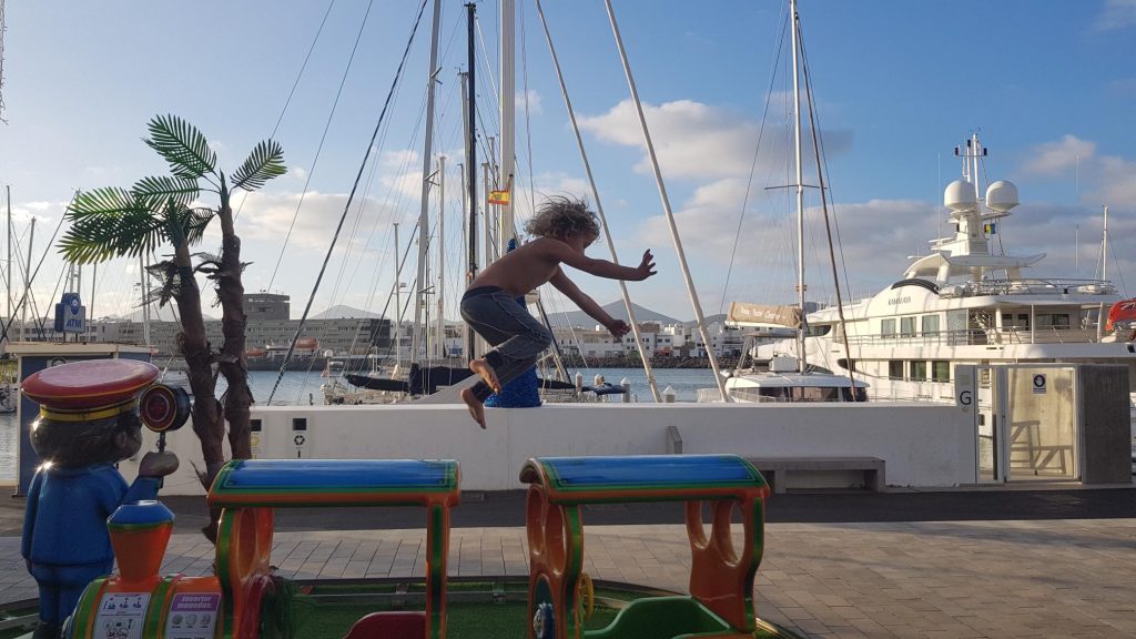 Well, we ended up out of the water in Arrecife boatyard for forever nearly three months. We made a crucial error in believing the boatyard’s estimate of five weeks for the works they were undertaking. We should have added both an “it’s a boat”-premium and a mañana-premium to that and had more realistic expectations. In the event, the long delay has given us the opportunity to get through a whole host of other boat-related jobs. Arthur, 5, when chatting to me at 4am after dragging me to his room for a snuggle, now asks what jobs he can help with tomorrow. Yes, child labour is alive and well in our family. Although he is not allowed up the scaffold with me anymore. When the yard staff are around 😉.