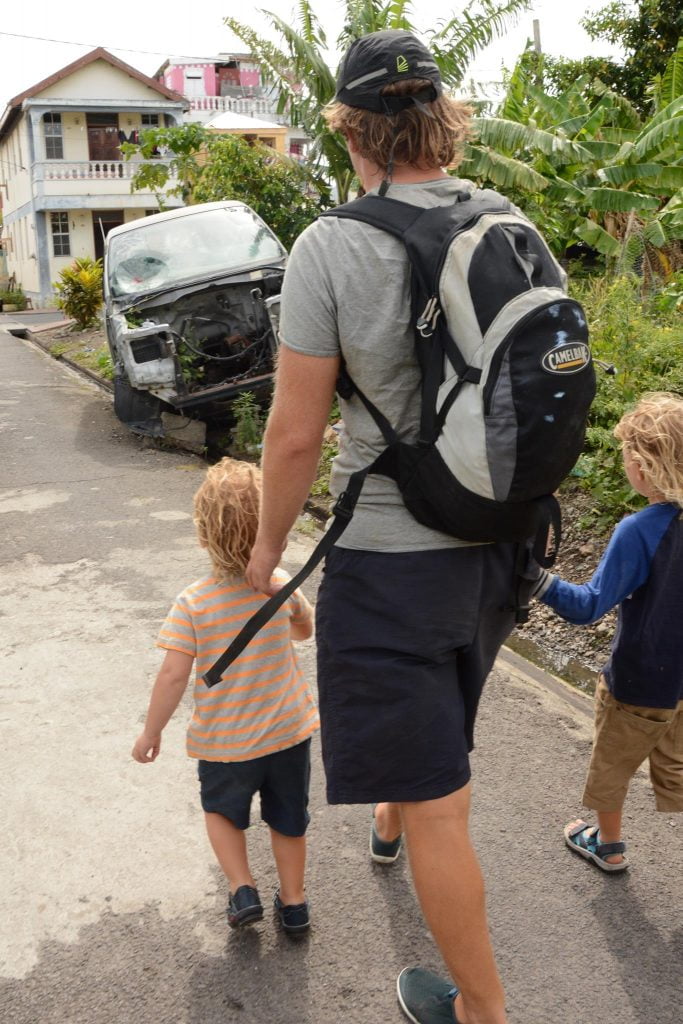 Sunday cruisers barbeque was good fun. We met some Swedish cruisers who had been anchored next to us in Fort de France, and somewhere near by in St Pierre, and then next to us again here – they found us, funnily enough the 3 kids seem to make us recognizable. Who knew? So, chats with them and some other cruisers/charterers in between finding the kids, helping Hector settle to sleep (made more difficult by the fact the locals LOVE kids so kept popping over to say hello), eating some delicious BBQ fish/chicken, rice and salad, etc. etc. Good fun, and such a good idea of the PAYS guys to organise it – they charge ECD$50 (about £14) per adult, kids half-price and baby free (he enjoyed his free chicken) for the food, keeping an eye on all the anchored boats, rum punch, fruit juice, music etc.