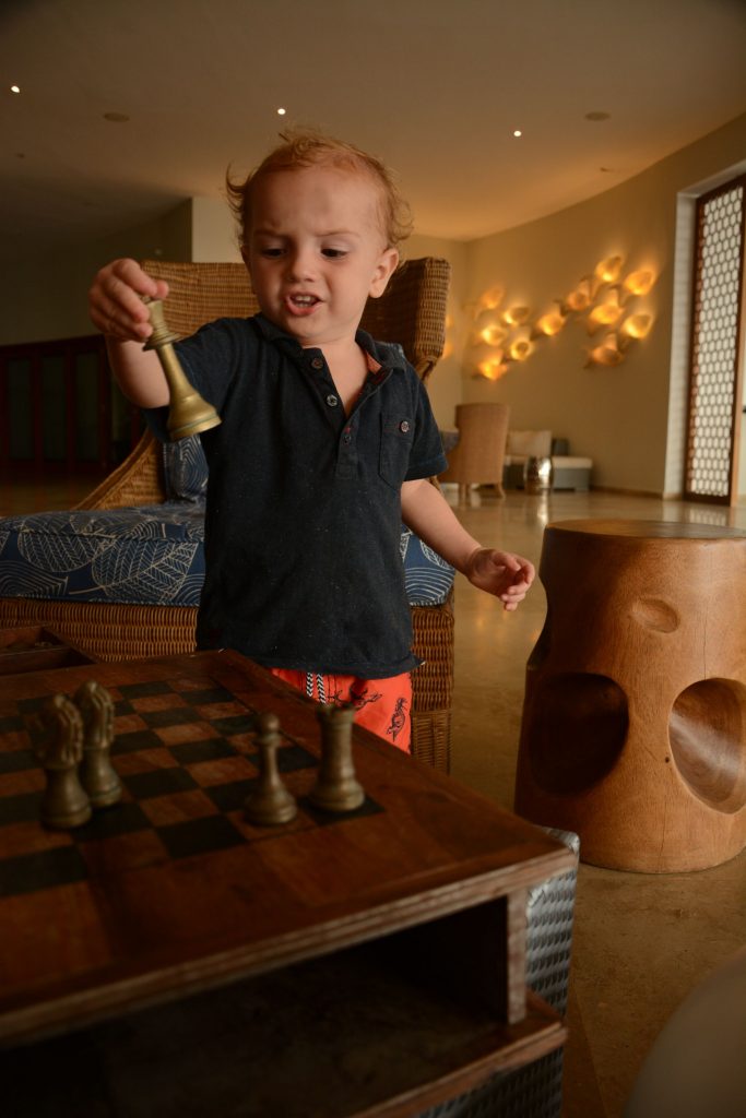 The hotel was odd – running at 5-10% capacity which was perplexing. Probably partly because of that there was little variation in menu between the three restaurants, no deserts apart from an uninspiring flan, and the mini market stocking was terrible. On the other hand the rooms were beautiful, the chess sets in the lobby were used extensively, and there was a beautiful infinity pool overlooking the bay. As well as a deck to the sea and paddleboards/kayaks to borrow. Some of the staff were awesome too – even getting a fist bump from Hector, which is unusual as he’s in “mama” mode at the moment.