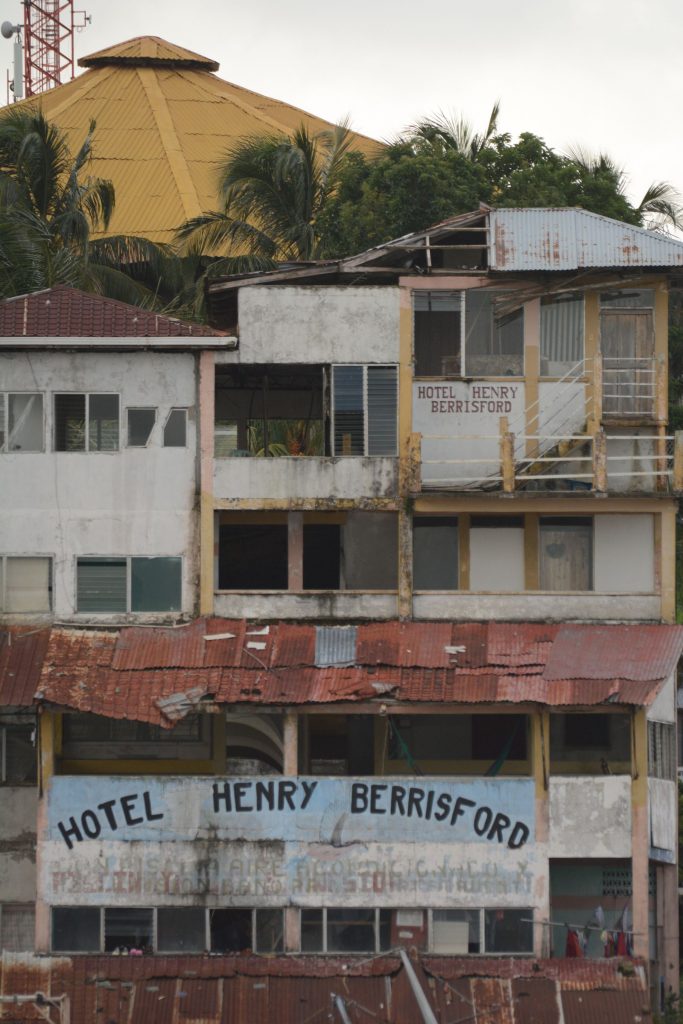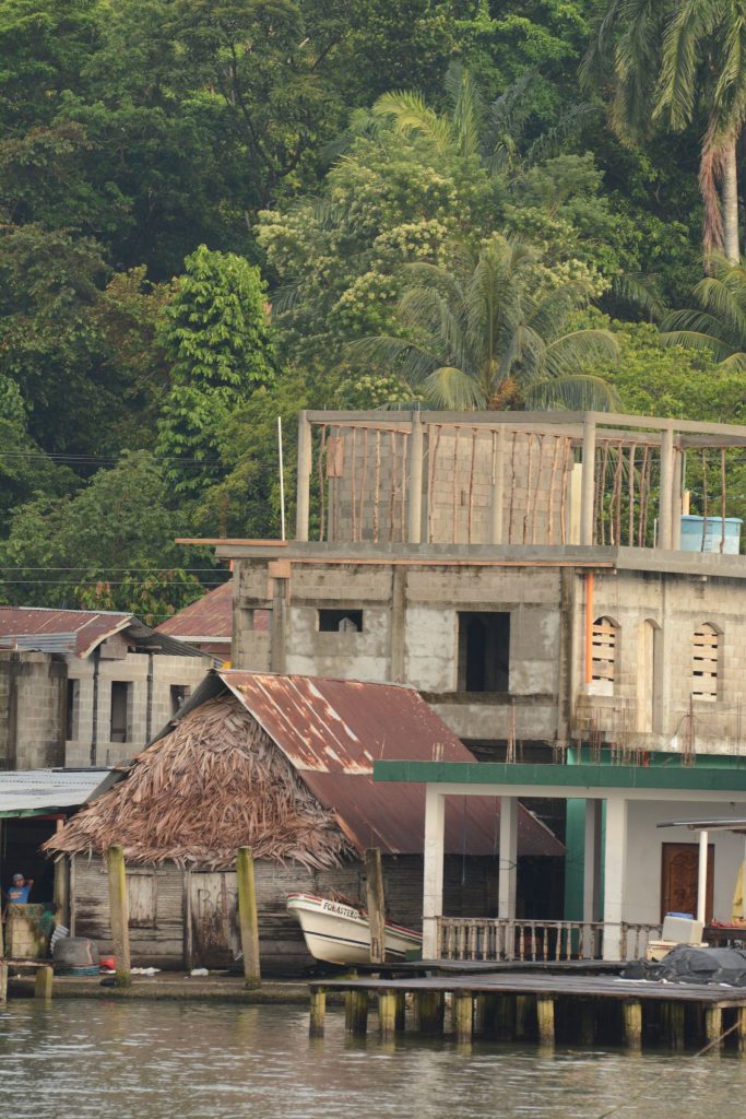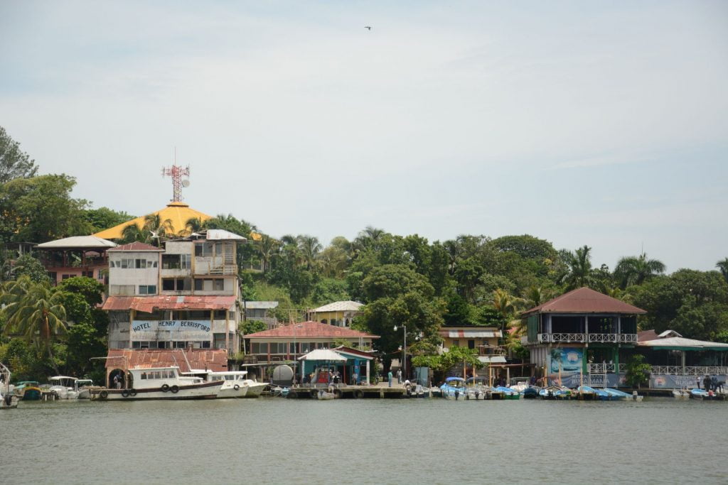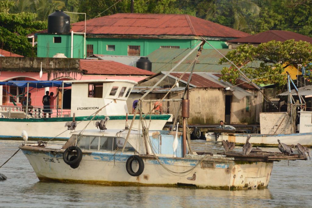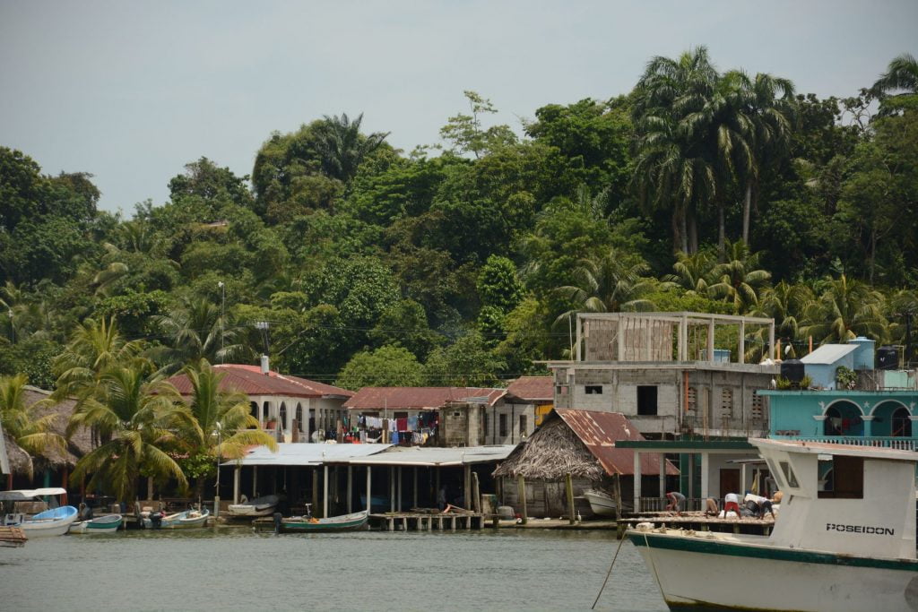 Livingston is a town situated at the mouth of the Rio Dulce and the place where cruisers clear in and out of Guatemala with customs and immigration. The morning after we arrived, we motored over to Livingston, which involves navigating a short but narrow and mostly unmarked channel, and traversing a shallow mud/sand bar. Technically, our electronic charts show the route along this channel, but the depth reading was beginning to decrease more than we were comfortable with, so we turned around and followed in a local fishing vessel that looked to have a similar draft to us, and obviously knows the route well.