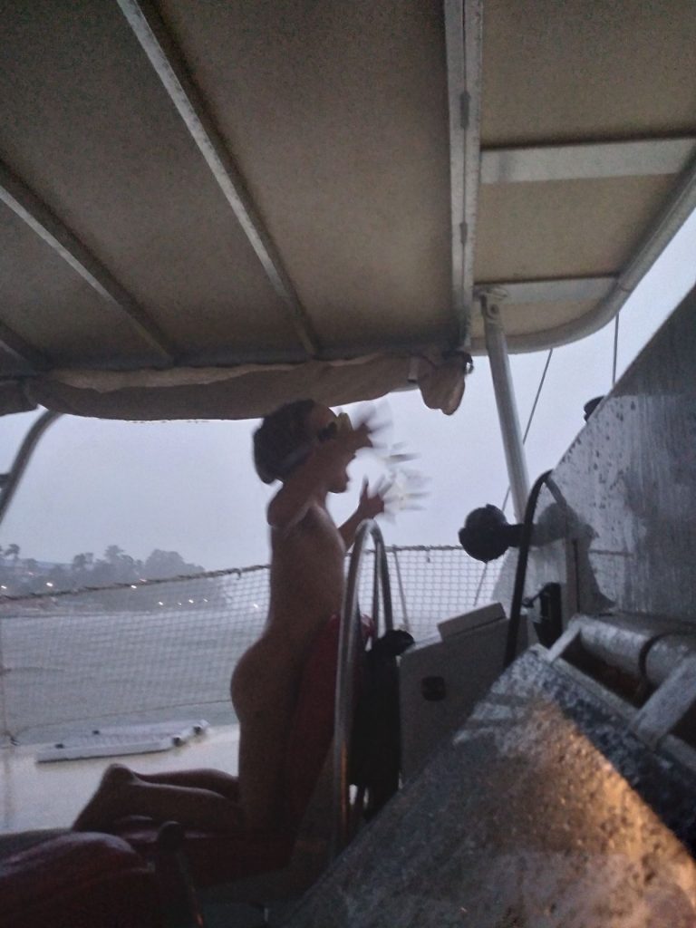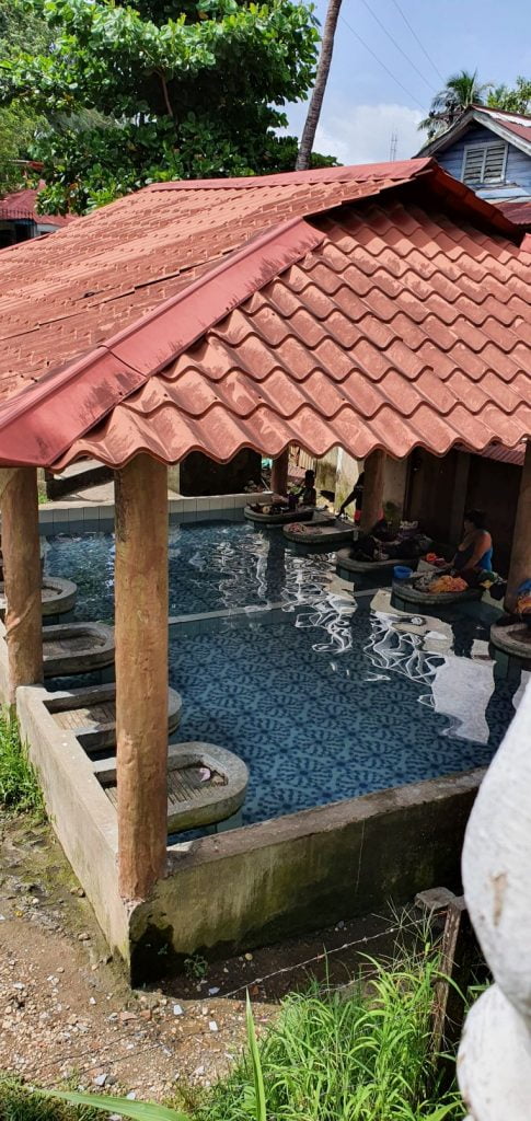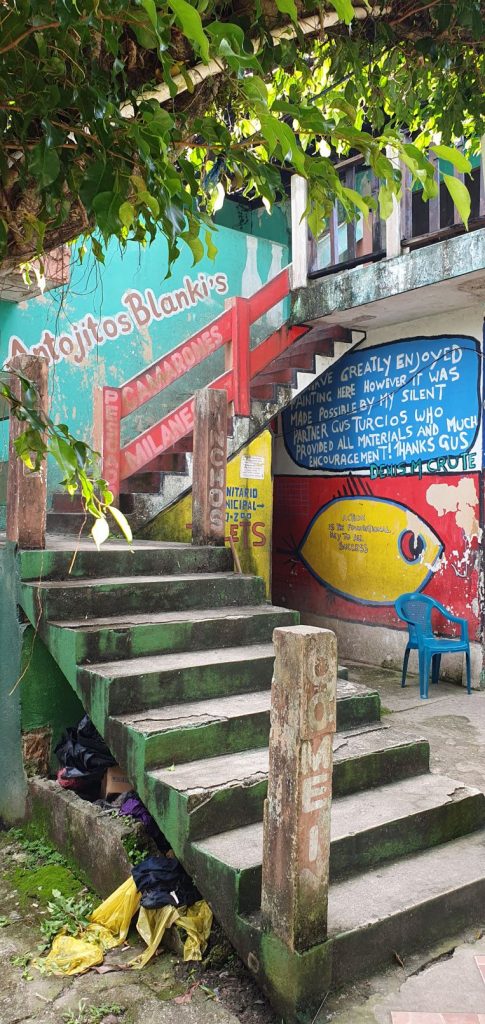 We radioed into the agent, Raul, who comes highly recommended to smooth clearance. It took a while for us to hear back, but when we were later visited at the boat by customs, immigration, and health, everything was easy. Later, I went with Theo and Hector to the office to finish the paperwork and pay clearance fees. At the dock, a guy was there to offer his help with tying on- for a fee of course. And then offered to take care of the dinghy, for another fee. These guys were a bit of a nuisance, but we hear crime rates in Livingston are high, so perhaps we were right to pay. Walking into town from the dock, we passed a small playground and lively covered sports court that was being used by local musicians. It was easy to find somewhere to buy a couple of local SIMs and get some fresh fruit and veg so that we could spend a few days anchored in El Golfete before heading to the marina.