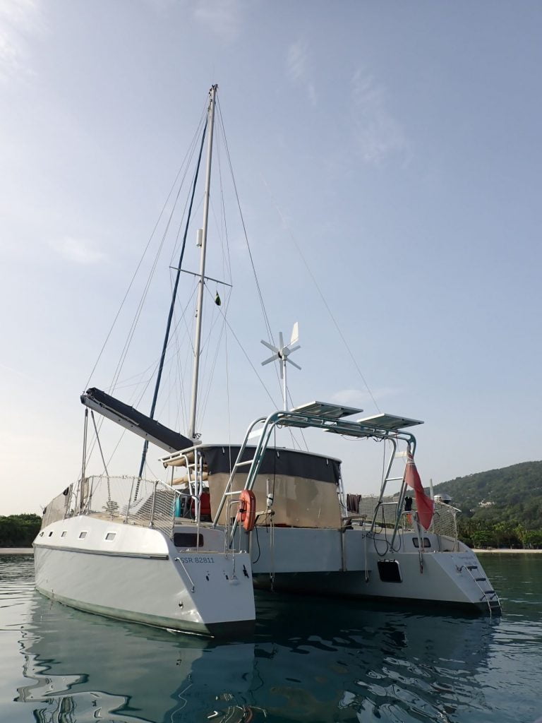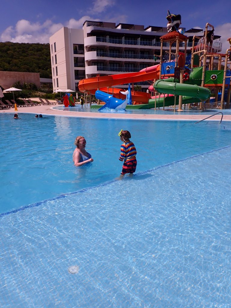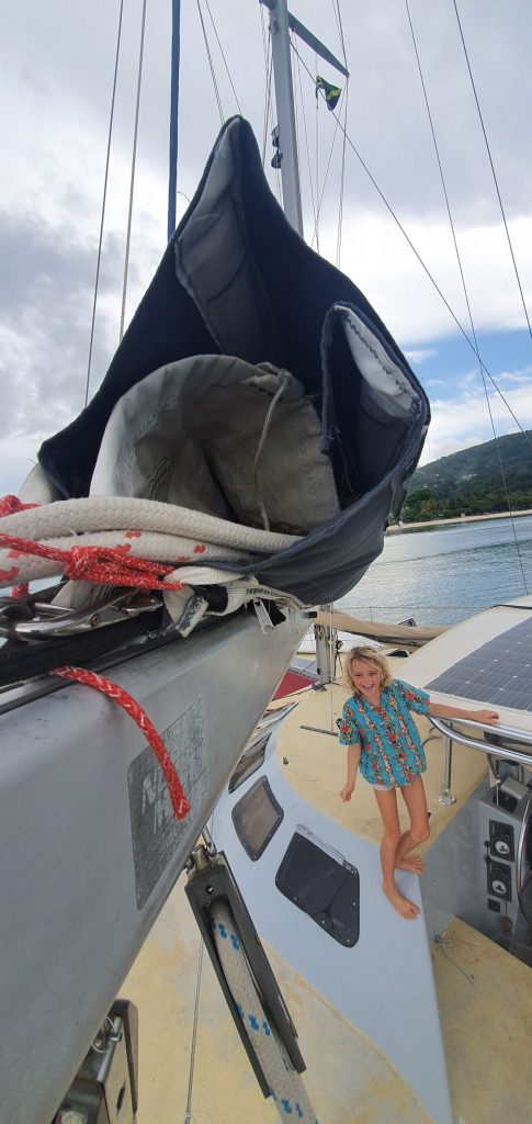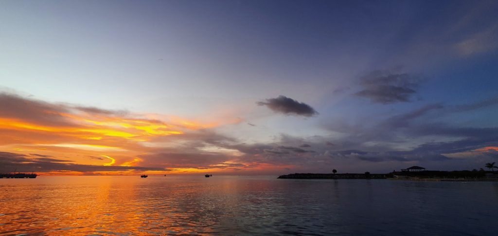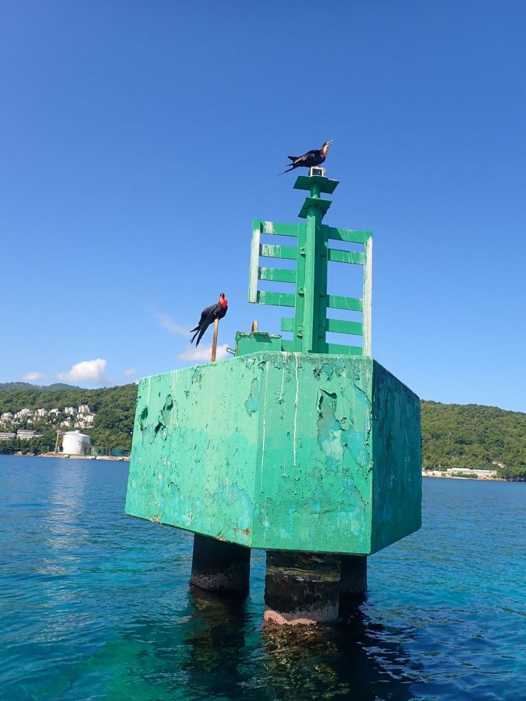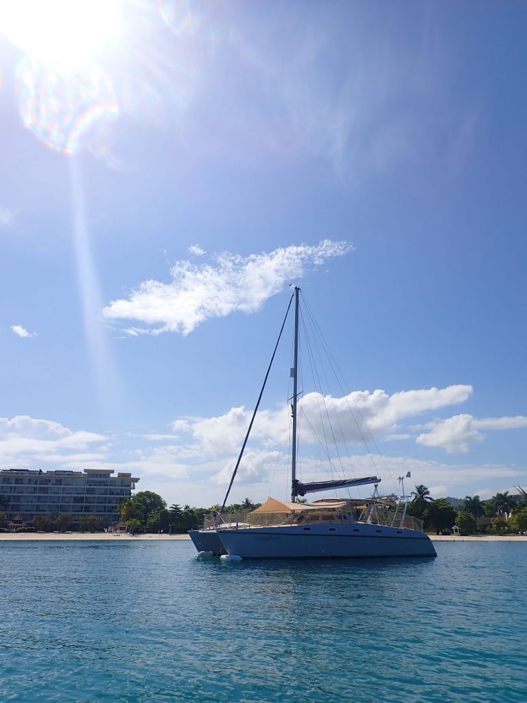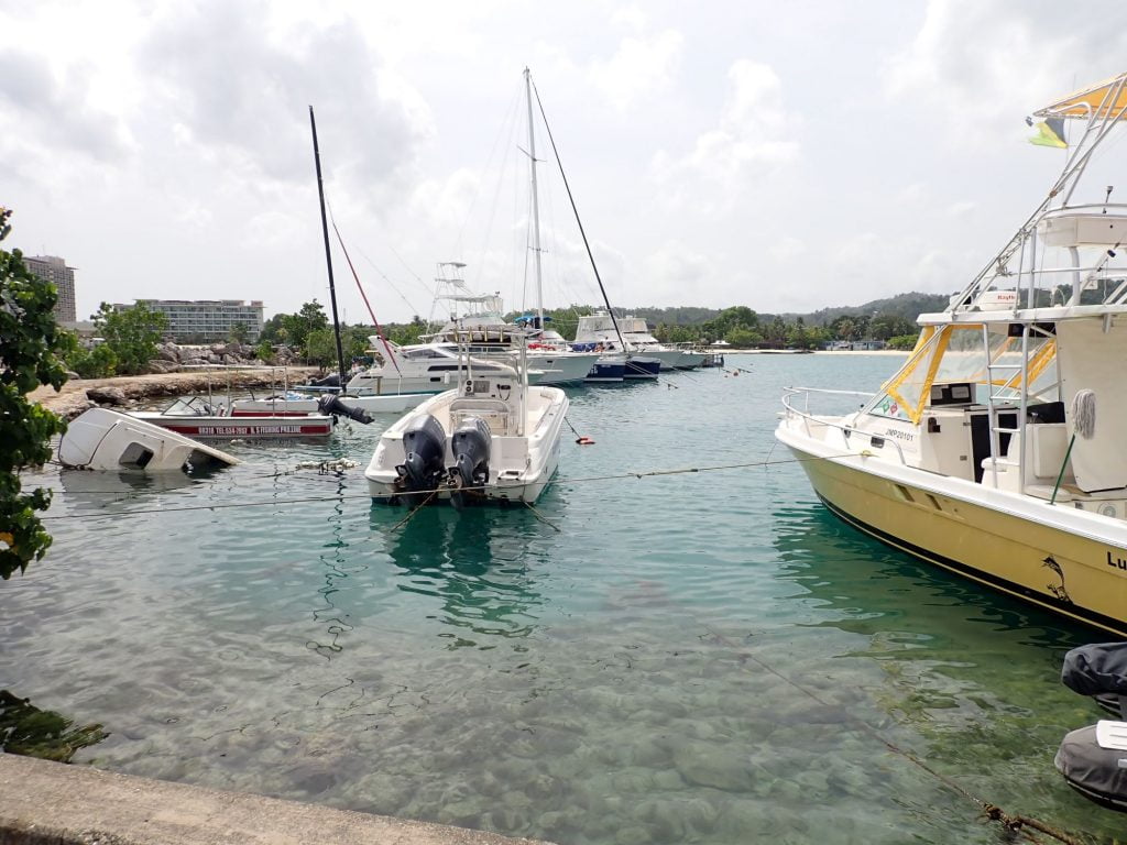 We visited a hotel for a week as Nana B managed to visit for the first time since COVID. We left the boat just as a tropical storm was forecast (which at one point was forecast to be a hurricane!), which wasn’t ideal. But the boat was as secure as it could be in the area – tied to two concrete-filled oil drums in relatively shallow water, with anchors set in the two directions heavier wind was likely from, and lots of chain, two bridles, etc. etc. Plus we spent a considerable amount of time removing sails and such from the decks. Not as difficult as the job had by the people running the local dolphin attraction, who were tasked with removing the dolphins from their enclosure to a more secure place in case we did get a hurricane! Very interesting to watch, even if we don’t particularly agree with keeping dolphins in captivity. An alternative option would have been sailing back to Montego Bay in order to leave the boat, but the yacht club moorings didn’t seem any more secure than we could achieve in Ocho, and we got the impression that, even if we could fit into the marina, we would be more likely to sustain damage from other boats, debris, etc.