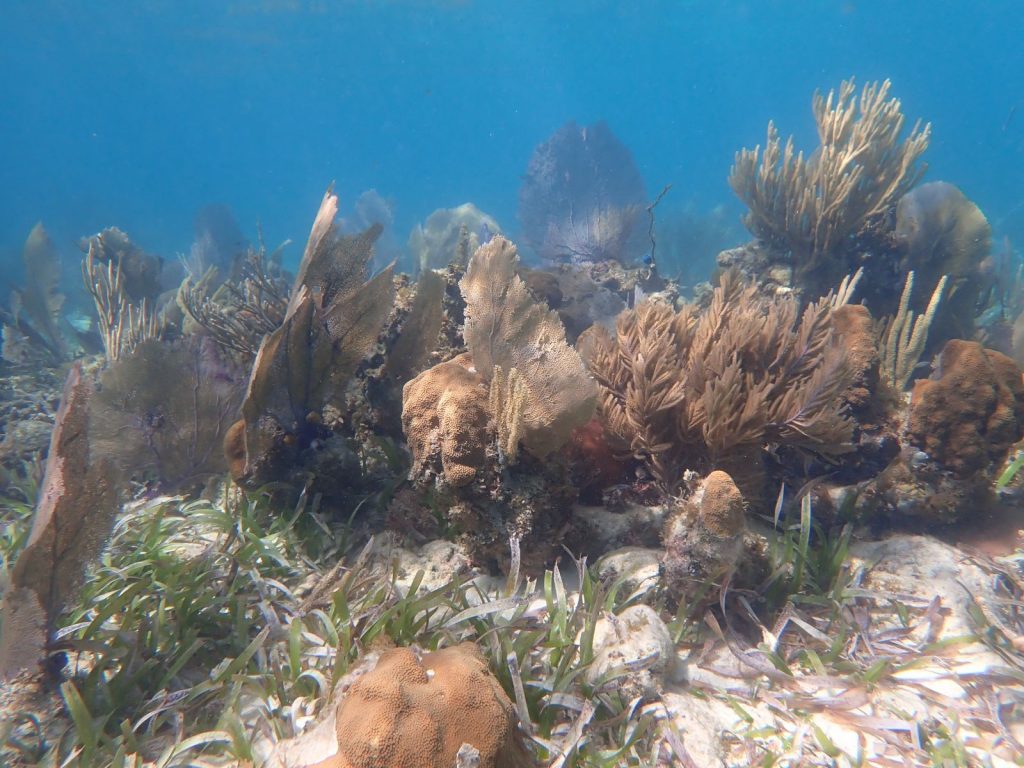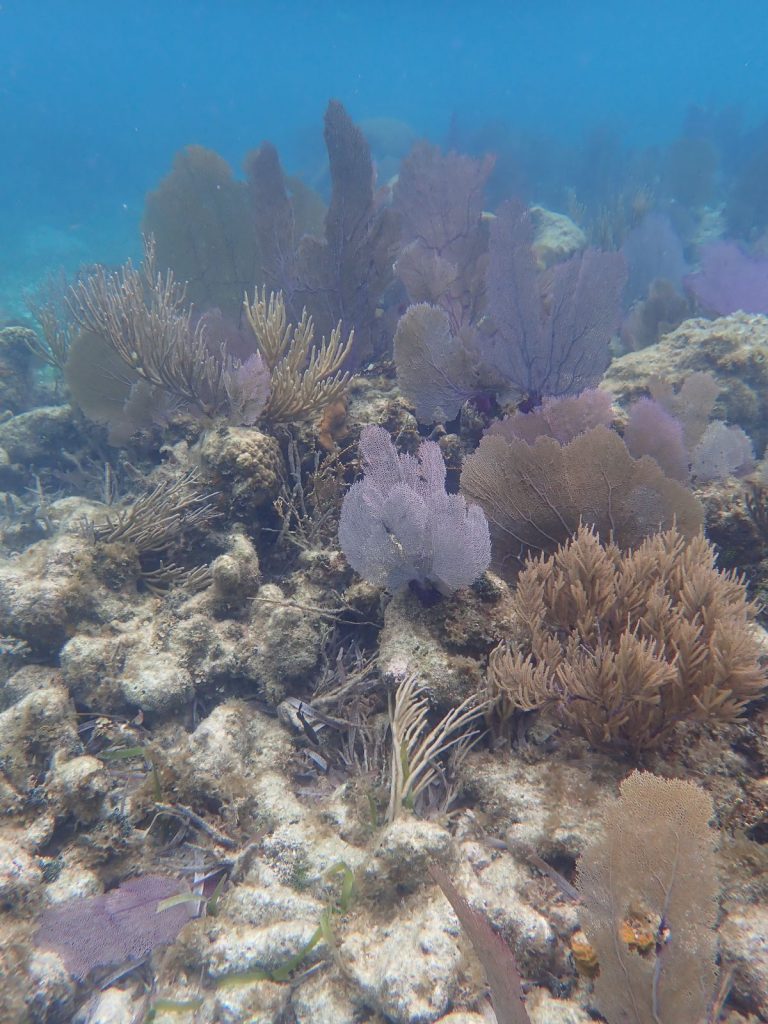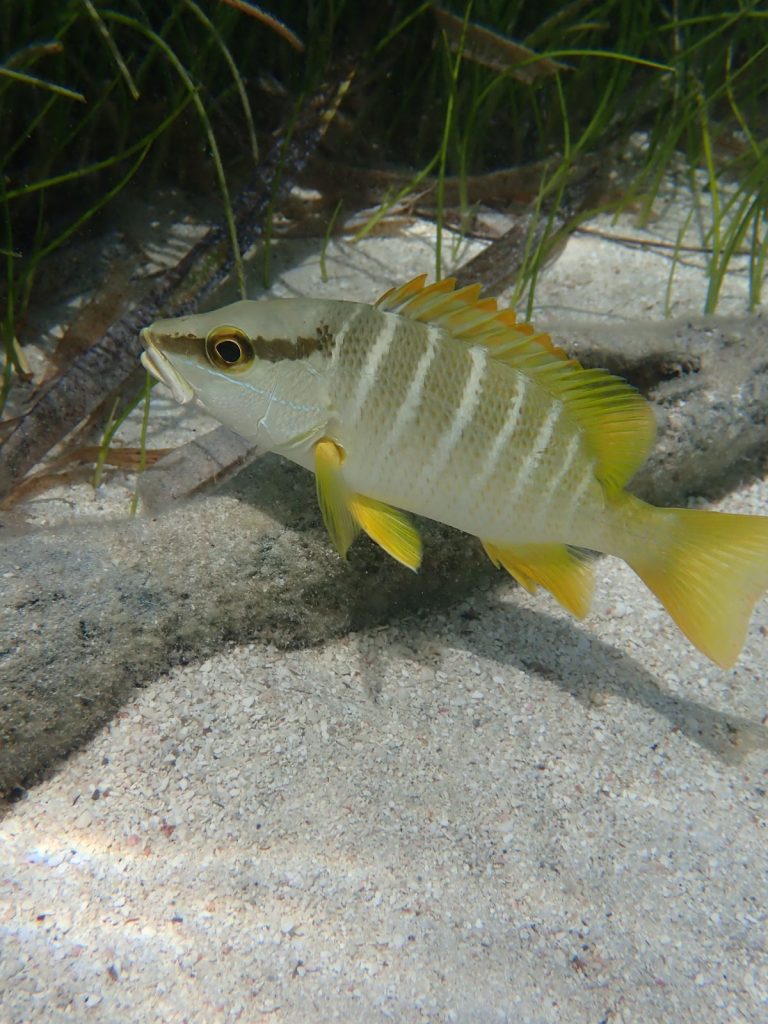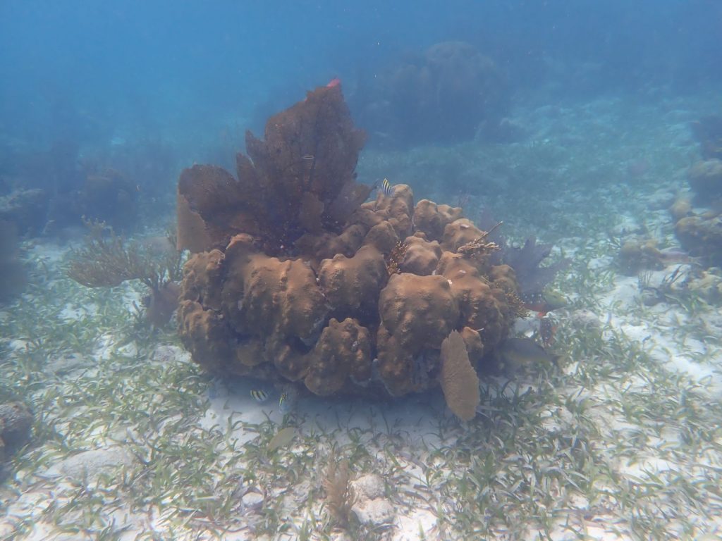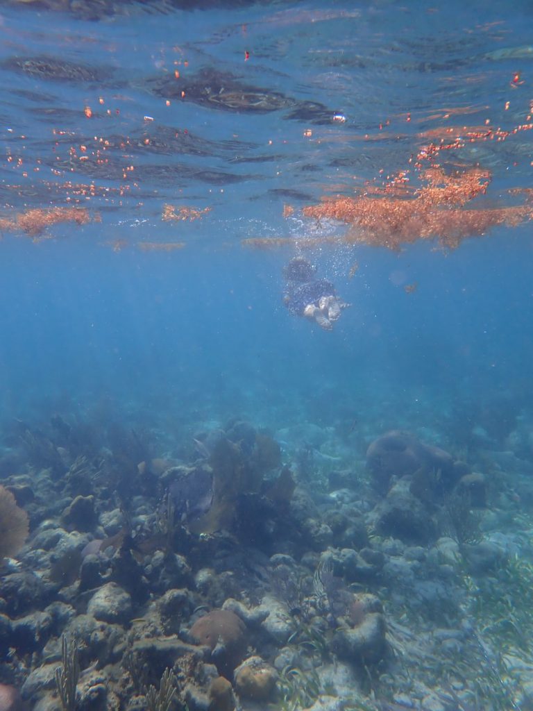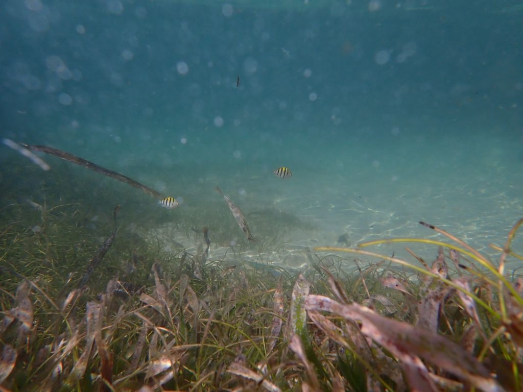 We sped over on the dinghy a couple of times from Hunting Cay, in the mornings while the seas were calm. The snorkeling off the South-West was wonderful, extensive seagrass beds and then, further off, some of the best coral we’d seen to date. “A proper reef” as the kids mentioned. A few dozen times. Arthur was especially happy to see a fish cleaning station- a Spotlight Parrot Fish waiting, head up, to be cleaned nby a Blue-Headed Wrasse. And we saw our first Lionfish, and invasive species here that we could and should spearfish, and some resorts will prepare and cook for you!