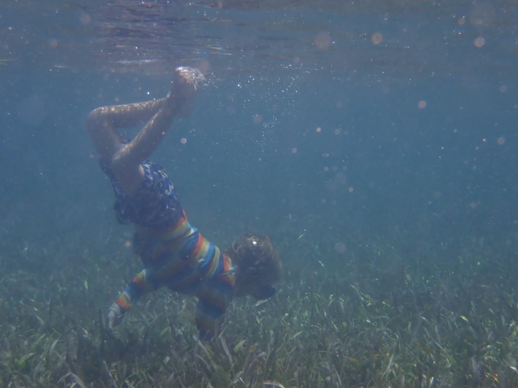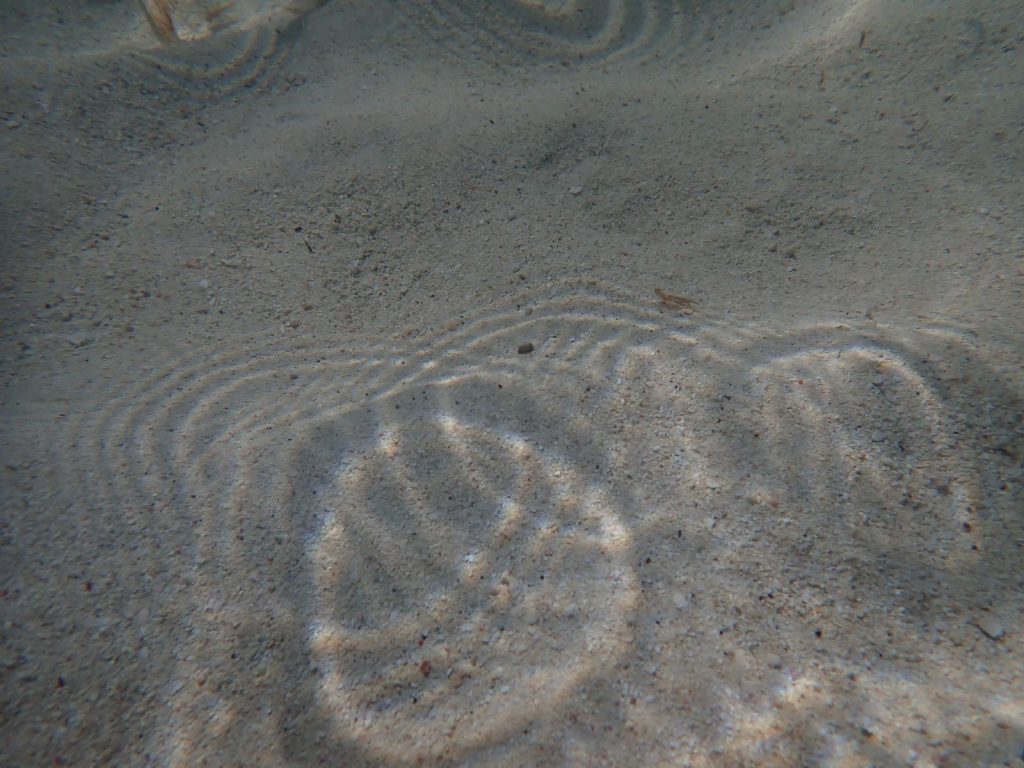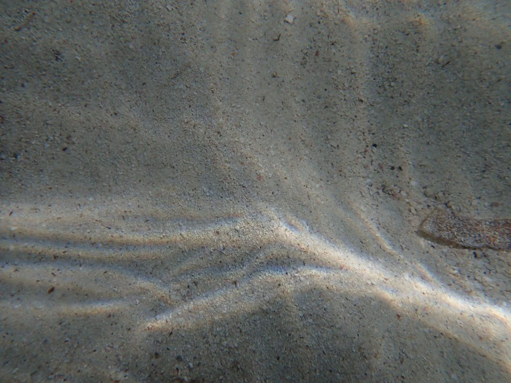 Theo is enjoying taking photographs underwater. here, he seemed to be especially liking the patterns sunlight made on the sand through the durface of the water.