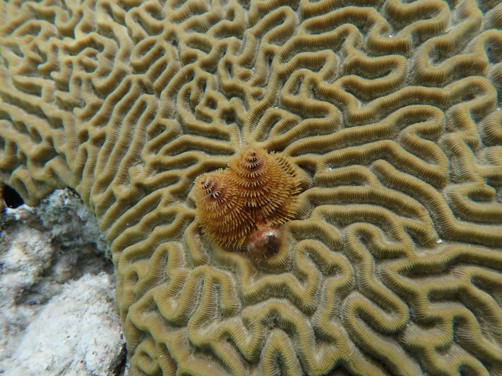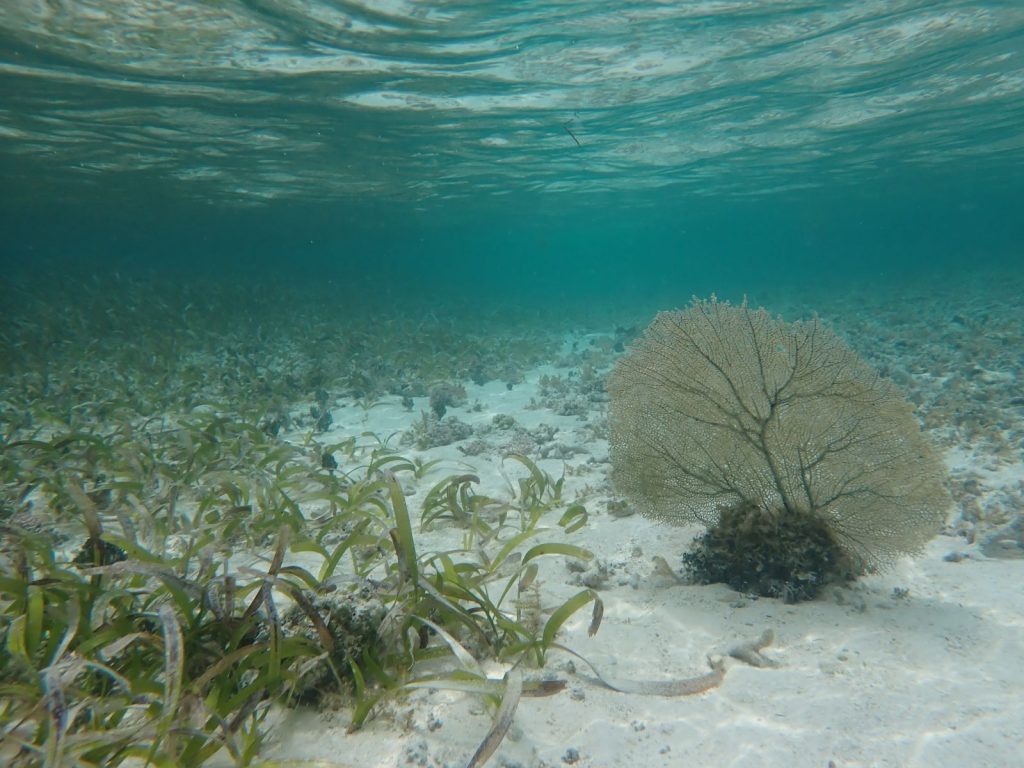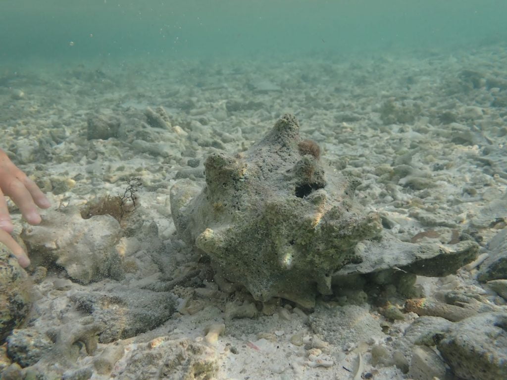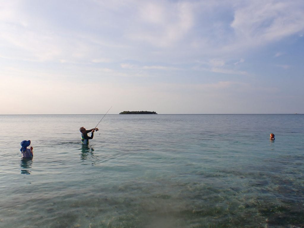 Nice spot. The reef to the West of the island is in pretty bad shape – lots of dead and dying coral. But the North-East corner, just out from the shaded drinking spots in the shallows, is fairly spectacular, especially along the drop-off. The beach is beautiful, and the island itself has plenty of coconut trees, beaches, and is regularly cleaned of the detritus that washes up on every beach around here.