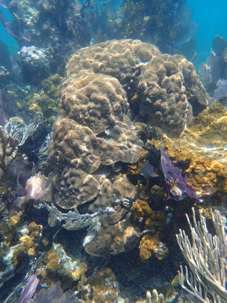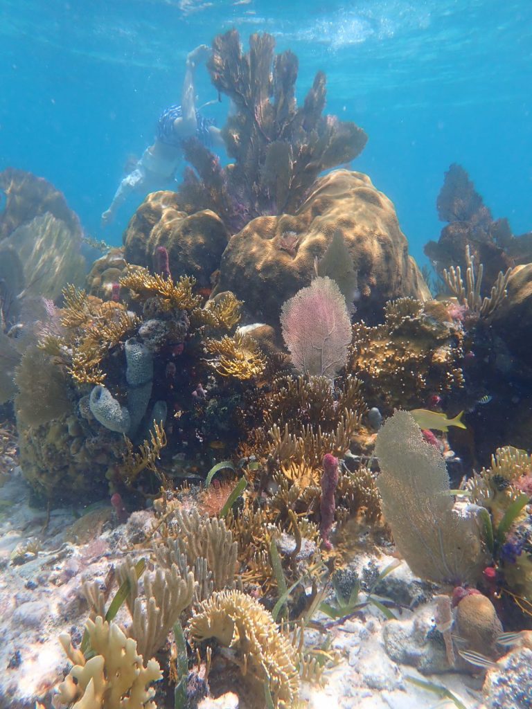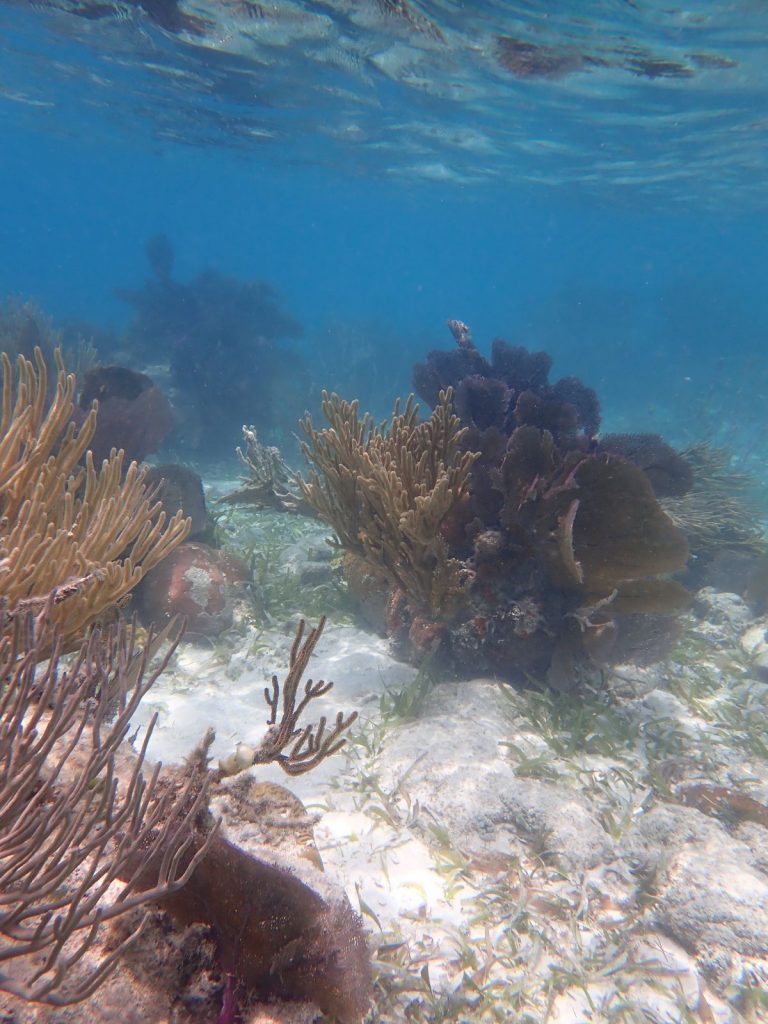That decision worked out for the best, as the snorkeling off the South-West of North Long Coco (half a mile away) was exquisite. That’s a thriving coral reef, you can see the younger coral (brain, elkhorn, fan) growing, spectacular colors, huge variety of fish, etc. etc. amazing. We also explored one of the sand bars to the East by dinghy, collected a few conch and enjoyed yet more beautiful coral on the edge of dark blue deeper waters. Hector had a little nap resting on the side of the dinghy, I joined him for a bit. Rather lovely.