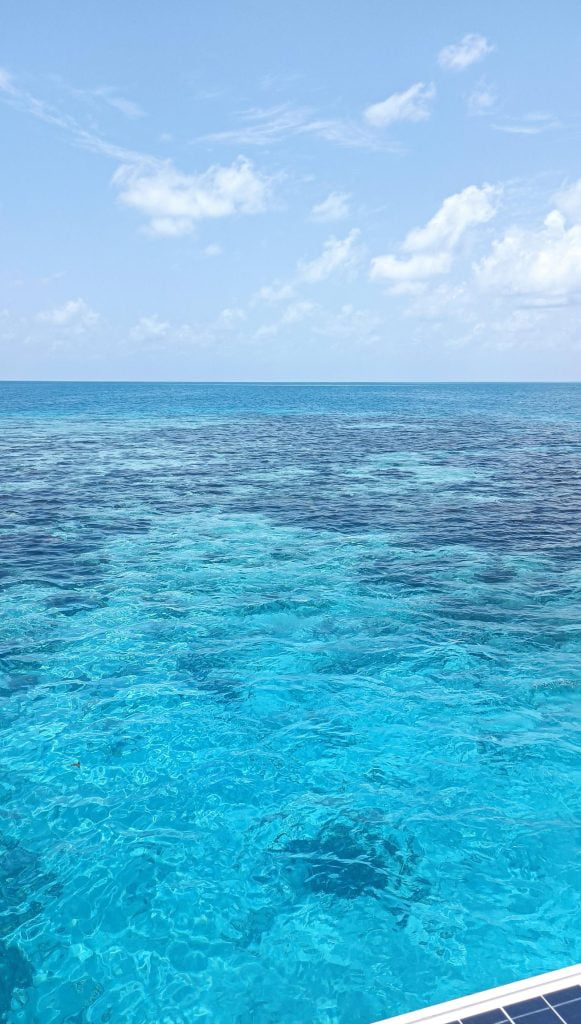 I had a snorkel too here and got the paddleboard out to glide Hector over the top of the reef. The reef off the stern was stunning, although in places diseased; the reef to the South-West which Charlotte went over to visit was also beautiful. Both were packed with life. We left while light was good enough for the rest of the trip to Middle Cay, with the intention of revisiting later if conditions allowed.
