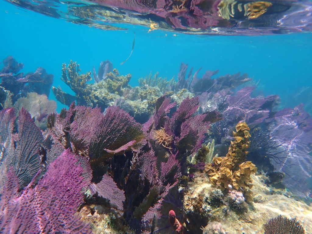 So on the way over, having examined a couple of spots that looked nice from the satellite images, we anchored with a reef 10m off our stern, in about 5m of water (a depth which means Arthur can dive to the bottom, and Theo can get within a few feet.) It was quite pretty.