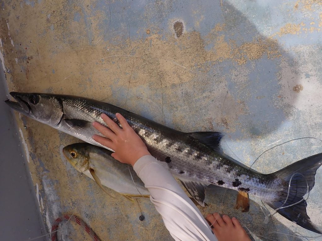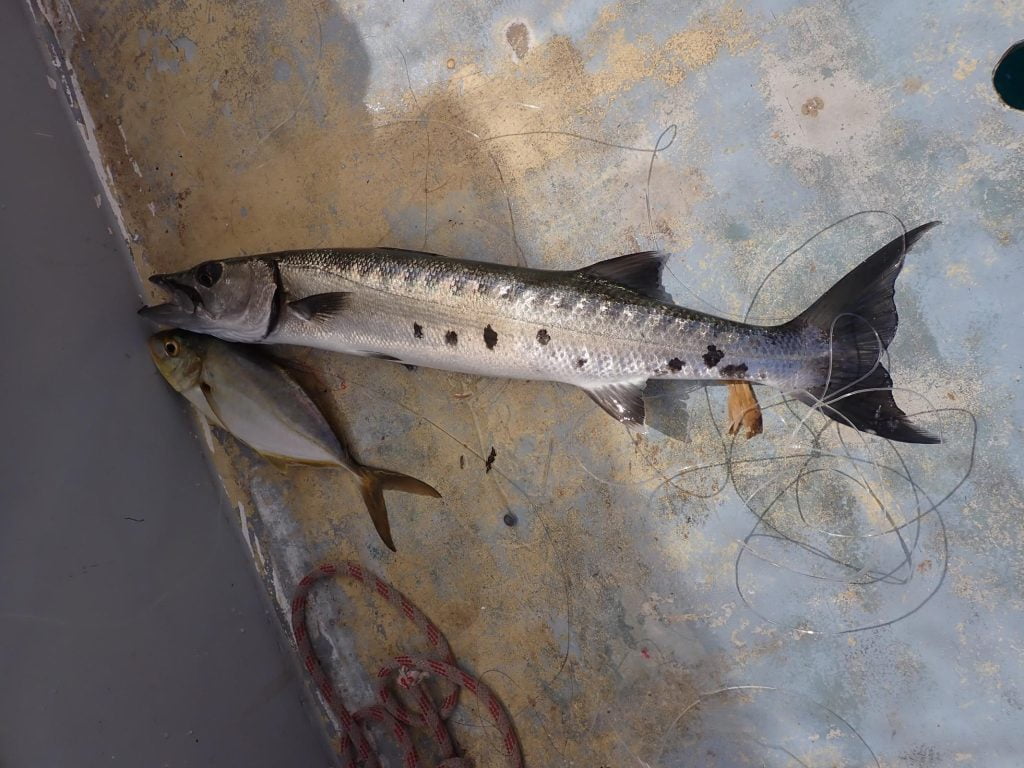 On the way from here to Hatchett we thought we were passing close to a log (prompting loud calls of “log aside”); turned out to be two manatees. And caught a beautiful kingfish.