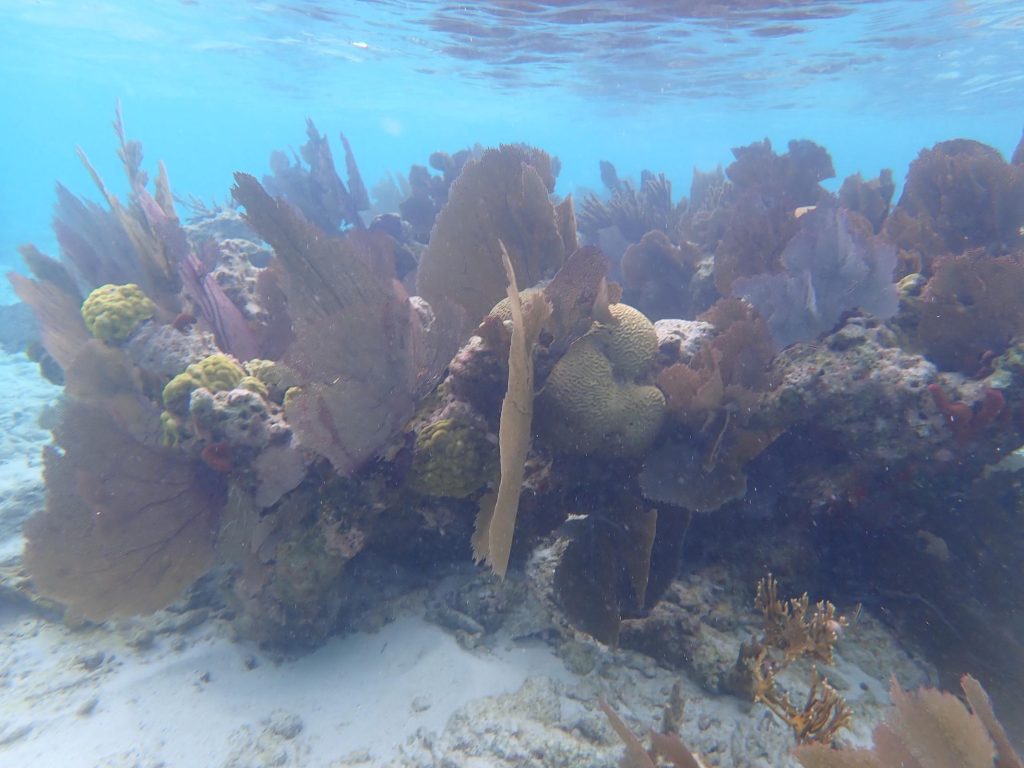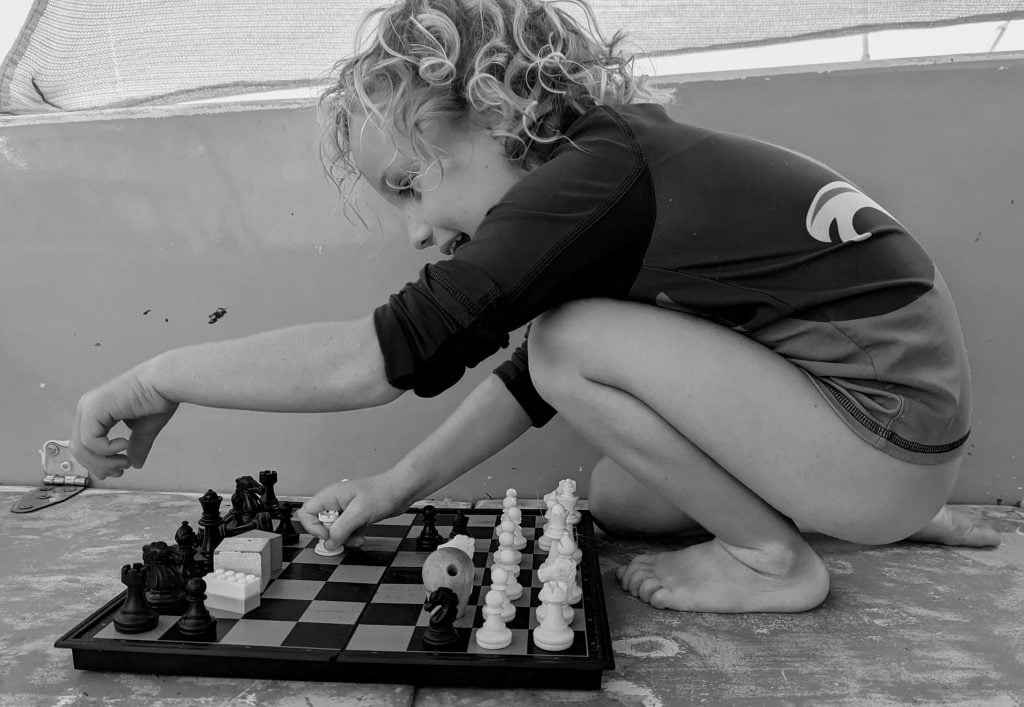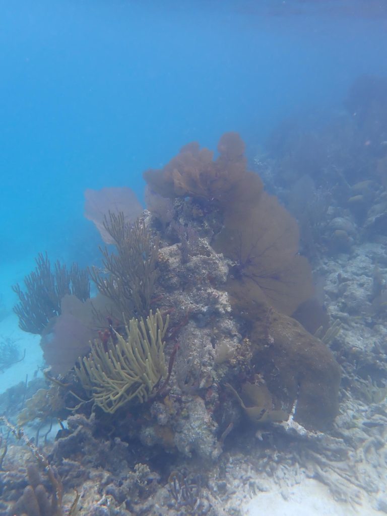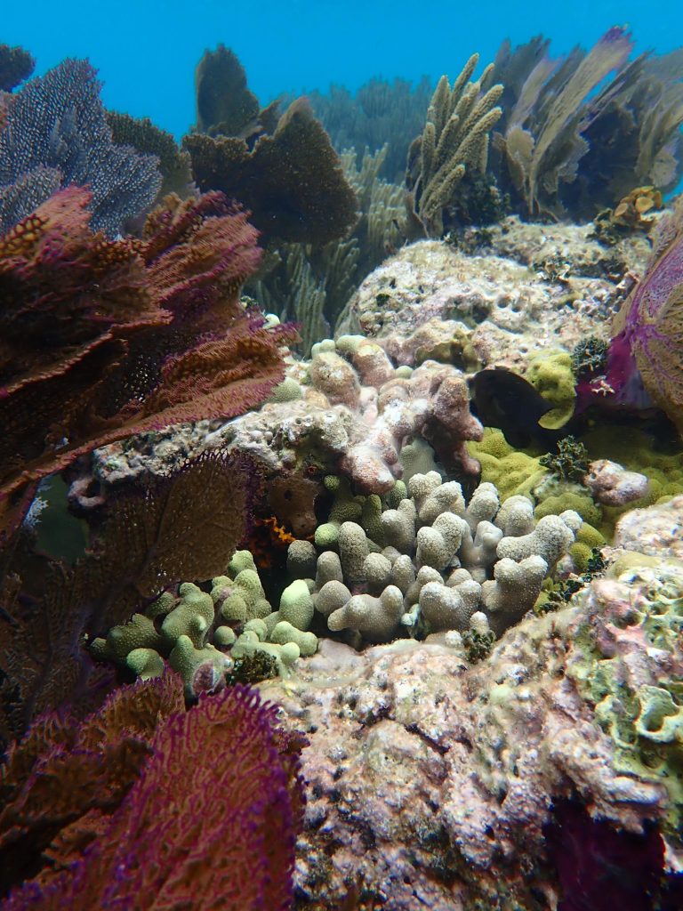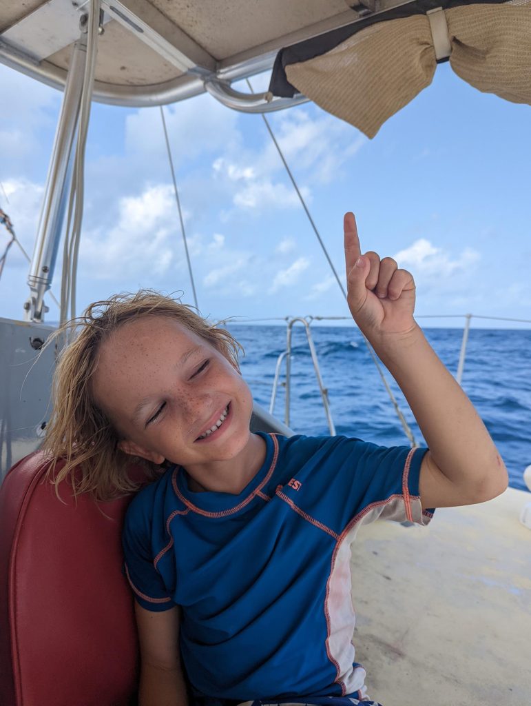 This anchorage was sheltered from the worst of the squalls, and close enough for Charlotte to make a couple of quick dinghy visits to the coral (with rapid returns to the boat as the cloud bank approached, and another around dusk as she worried about sharks).