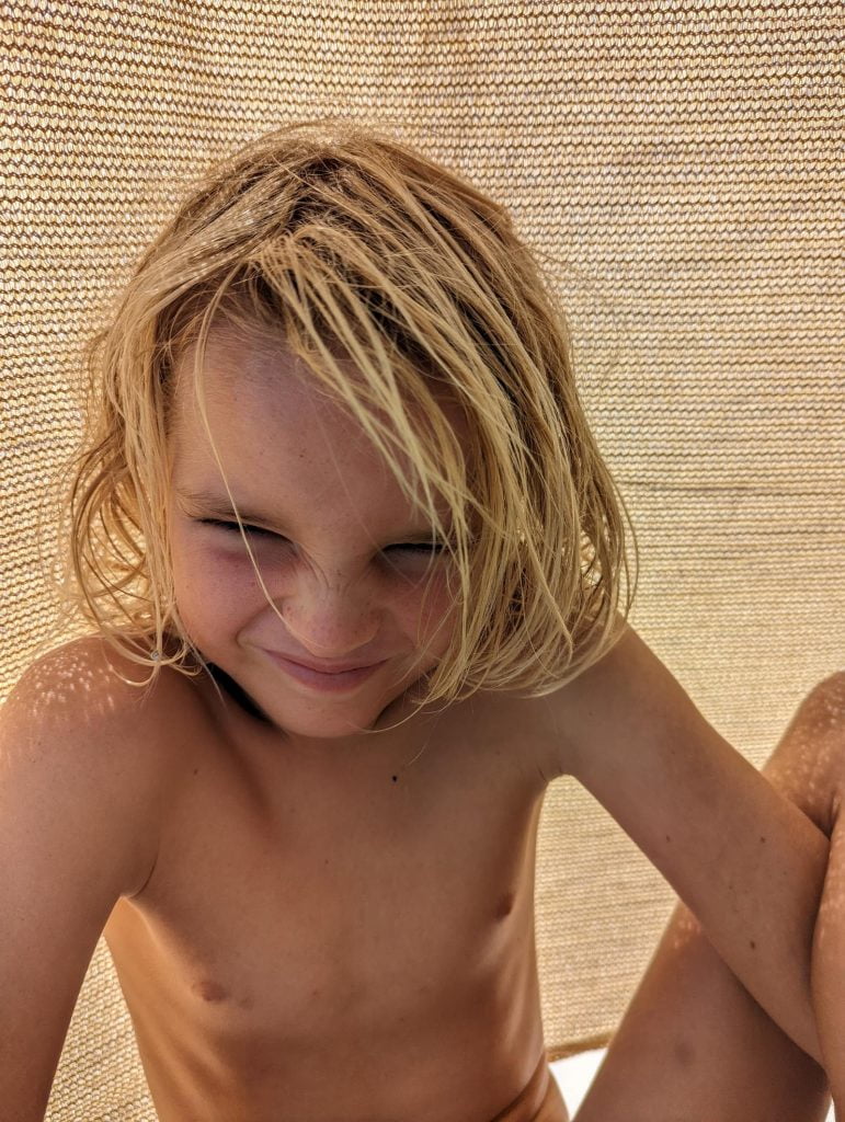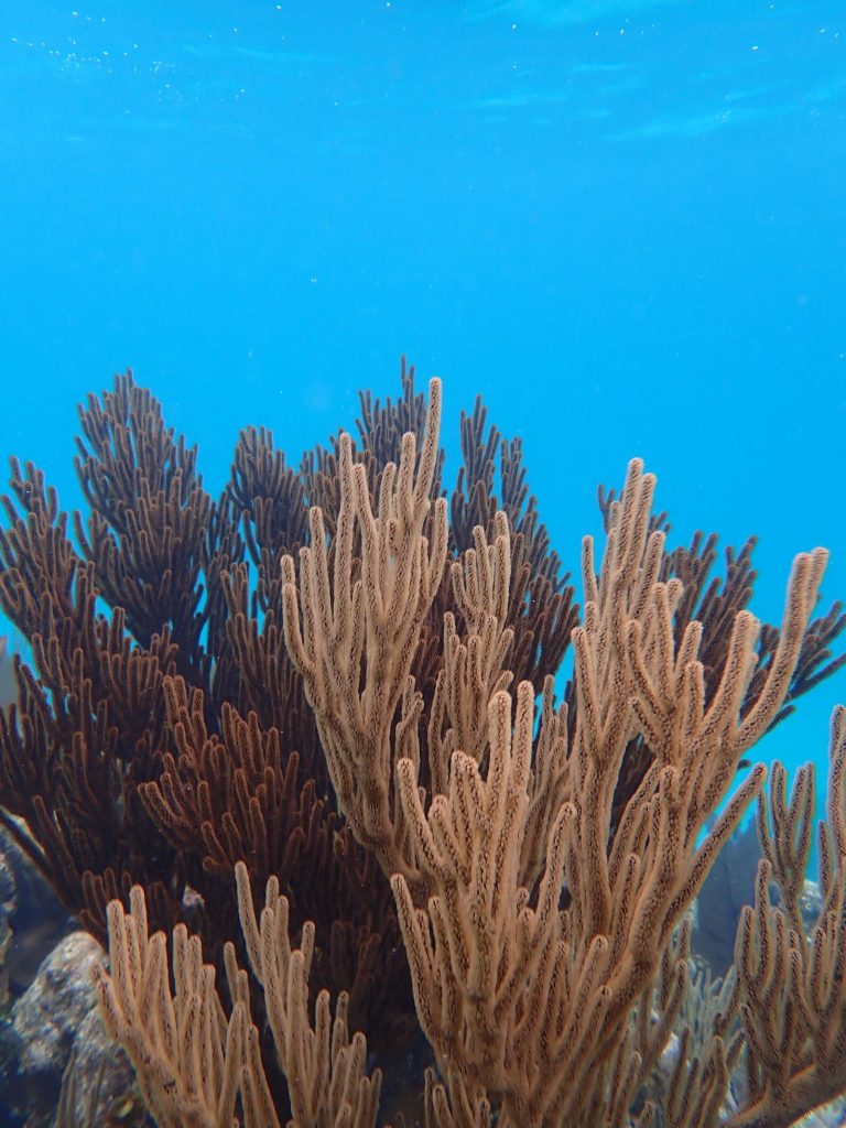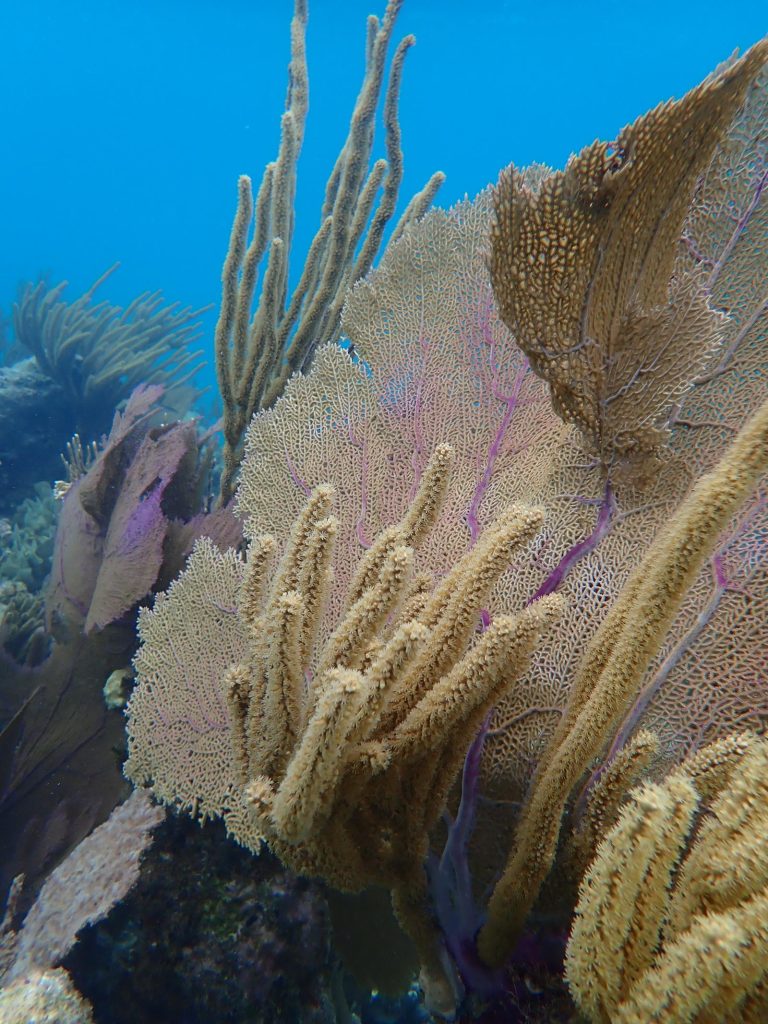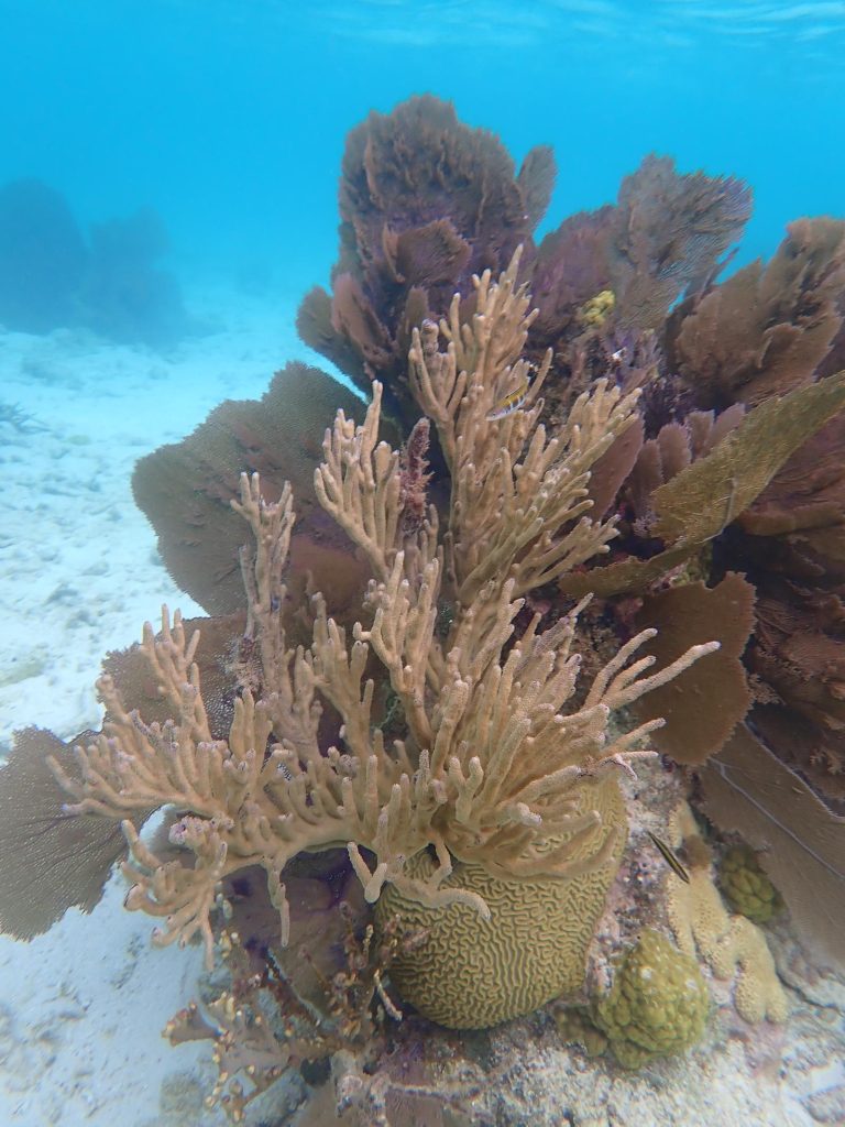 This anchorage was sheltered from the worst of the squalls, and close enough for Charlotte to make a couple of quick dinghy visits to the coral (with rapid returns to the boat as the cloud bank approached, and another around dusk as she worried about sharks).