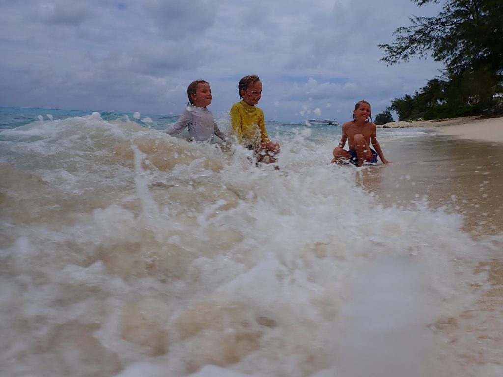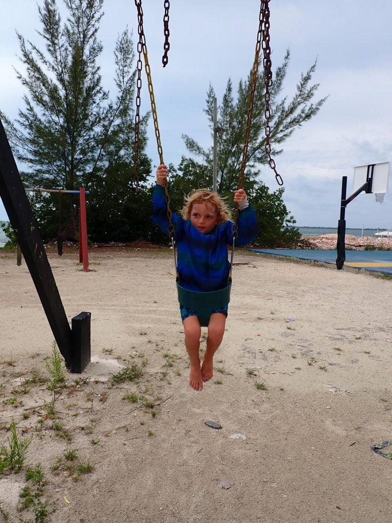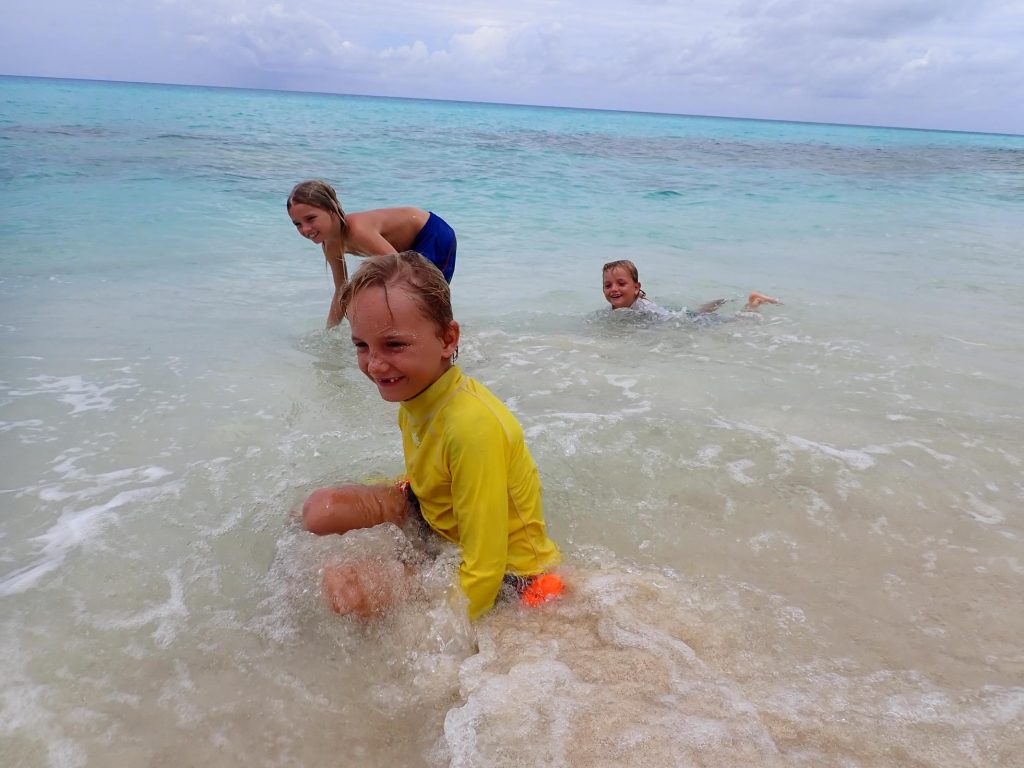 This was our first visit to the Bahamas, so we had the usual formalities. Charlotte dropped me off on the beach to go and complete check-in – I found customs at the Big Game Club and immigration slightly further up the road at a municipal administration building. It was easy and fast, so I was calling for pickup on the VHF while the kids and Charlotte were still eating, but they soon found their way to the beach. We just stayed on the beach and played, and when Hector was tired and it was time for the adults to prepare dinner we left Arthur and Theo to come back on their own on the paddleboard (before dark). That was a theme of the next few days…