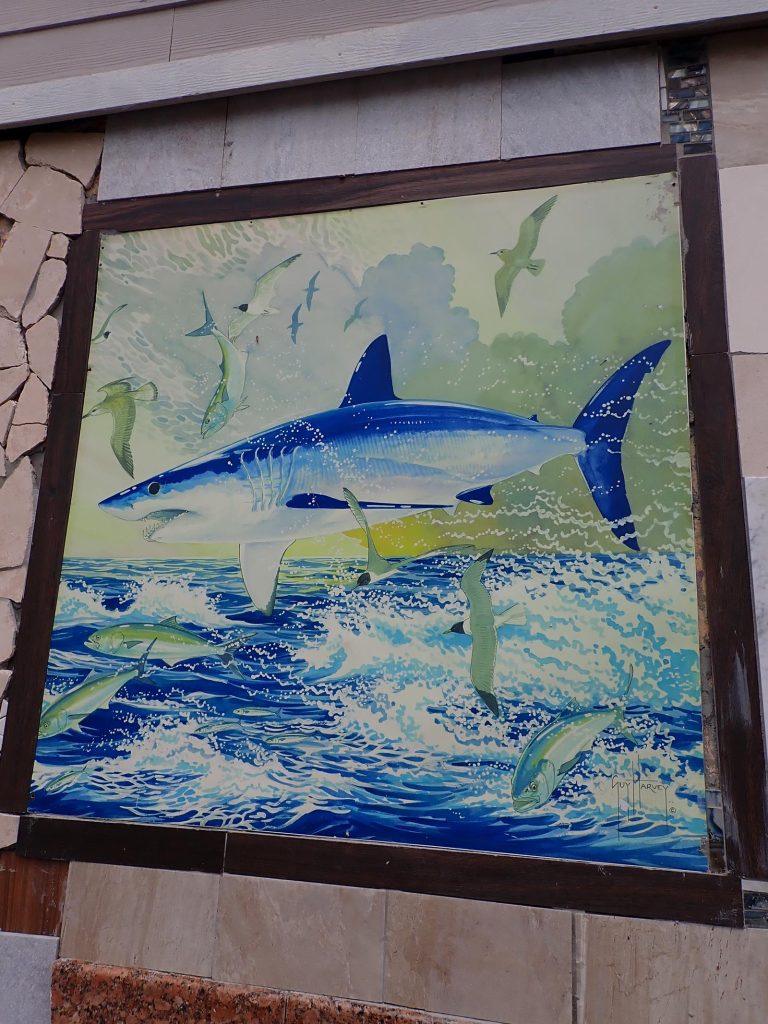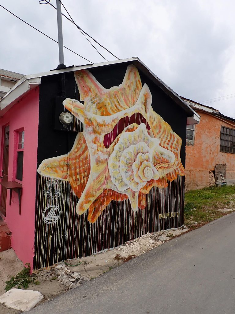 We also visited the aptly named Dolphin House, arriving a little before opening time we ran into the owner, Ashley Saunders. Ashley is, to understate things, an interesting guy – he has spent the last 20+ years building this house by hand out of cast offs (bottles, broken tiles) and the bounty of the sea (conch shells, which make excellent building material). It’s both beautiful and robust, as it needs to be having been through a few hurricanes already. He took us upstairs to the work-in-progress on the third floor and to take a look at what will become a roof terrace, in time. Ashley’s love for the sea and, particularly, the dolphins he swims with regularly offshore was inspiring. And I can’t help mentioning his library/museum, which is as eclectic as it is well-considered. We didn’t even get into his poetry, but the lyricism comes across in his everyday speech anyway. Go visit if you like books, conch, interesting people, the sea, or the island (his book, History of the Bimini Islands, signed, is now on our shelves).