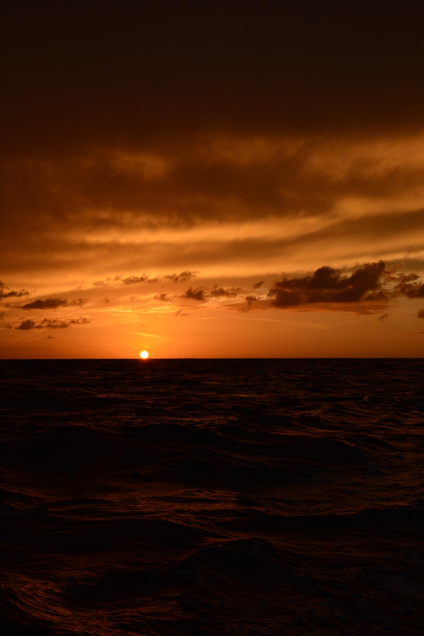 An easy, peaceful 80Nm sail across Great Bahama Bank. The spinnaker had an outing, and we stopped at sunset. Lovely.