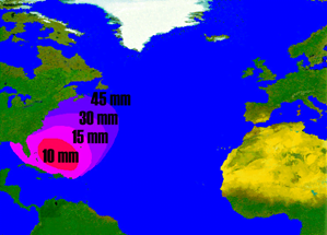 Dave spotted this eel swimming along the surface around the boat hulls. It was a deep, shiny black, with a fan-like tail and two fore fins behind the head. It spent a couple of hours circling one hull but it may have been there longer before we noticed it that morning. After an internet search, we believe this is an American Eel- there is nothing similar in our reef identification guides.